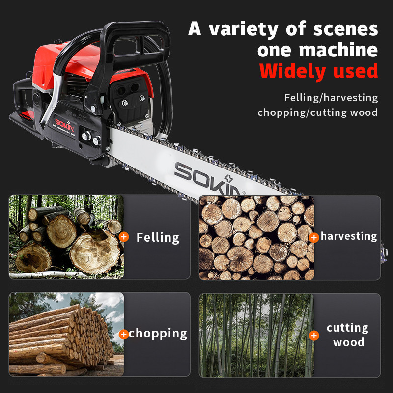 SOKIN Garansi 12 bulan Mesin Potong Kayu 20inch bar Chain saw 58CC 2Tak Gergaji Potong Kayu mesin gergaji Mesin senso