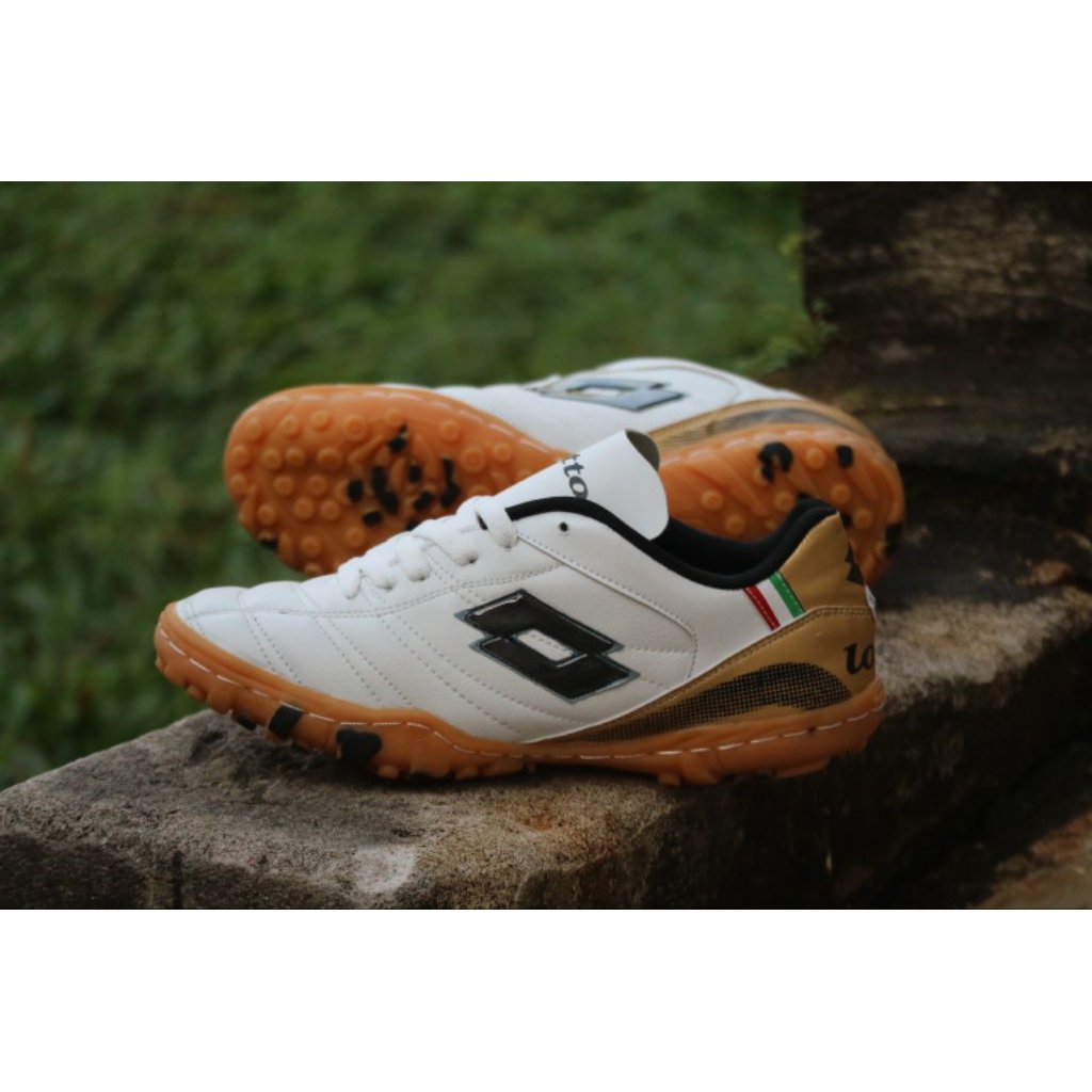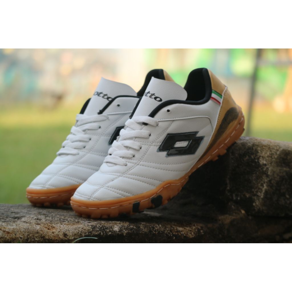 sepatu mini soccer lotto white kuning super quality outsol sudah di jahit keliling