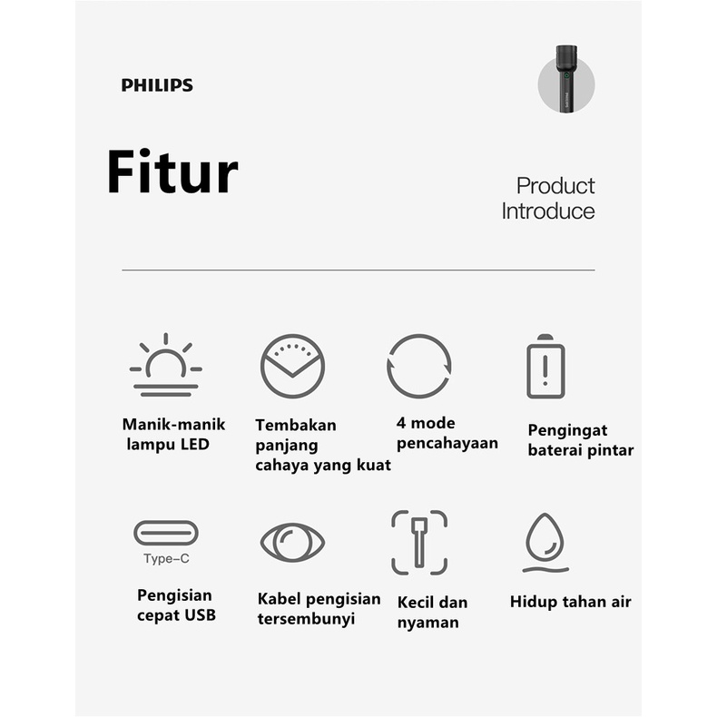 Philips Sfl1236 Lampu Senter Led Flashlight /Senter Kecil Super Terang Tahan Air/ Senter Cas Type C