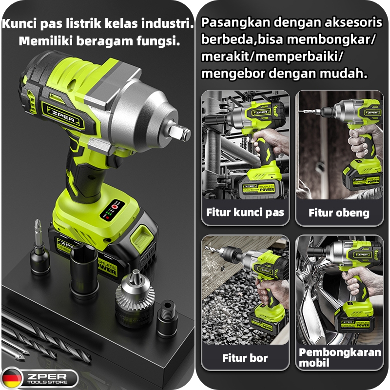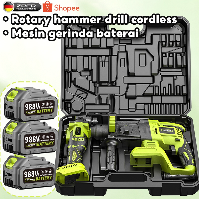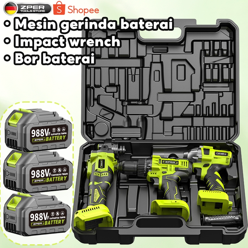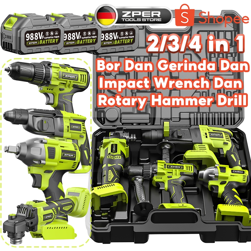 Zper Mesin Bor Dan Gerinda Dan Impact Wrench Dan Rotary Hammer Drill Baterai 1 Satu Set Perkakas Listrik Toolkit Set