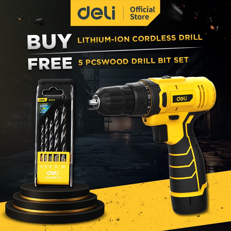 Deli Cordless Drill / Mesin Bor Baterai Kuat Bertenaga EDL-DZ12-4A2
