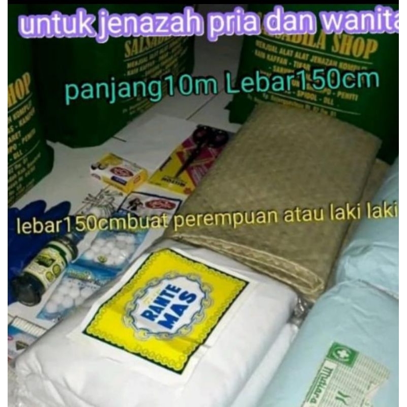 paket kain kafan untuk jenazah pria dan wanita perlengkapan jenazah ikhwan dan akhwat komplit lebar 150cm gak usah jahit