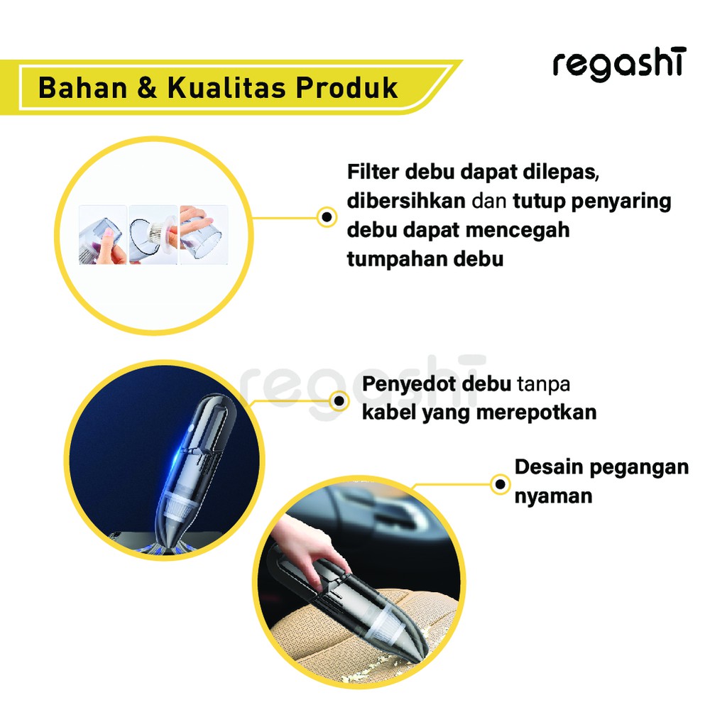 Regashi Penyedot Debu Mobil | Alat Penyedot Debu Mobil Portable | Mini Portable Vacuum Cleaner