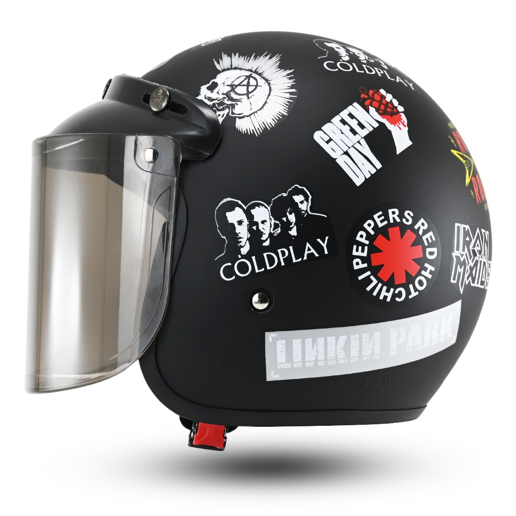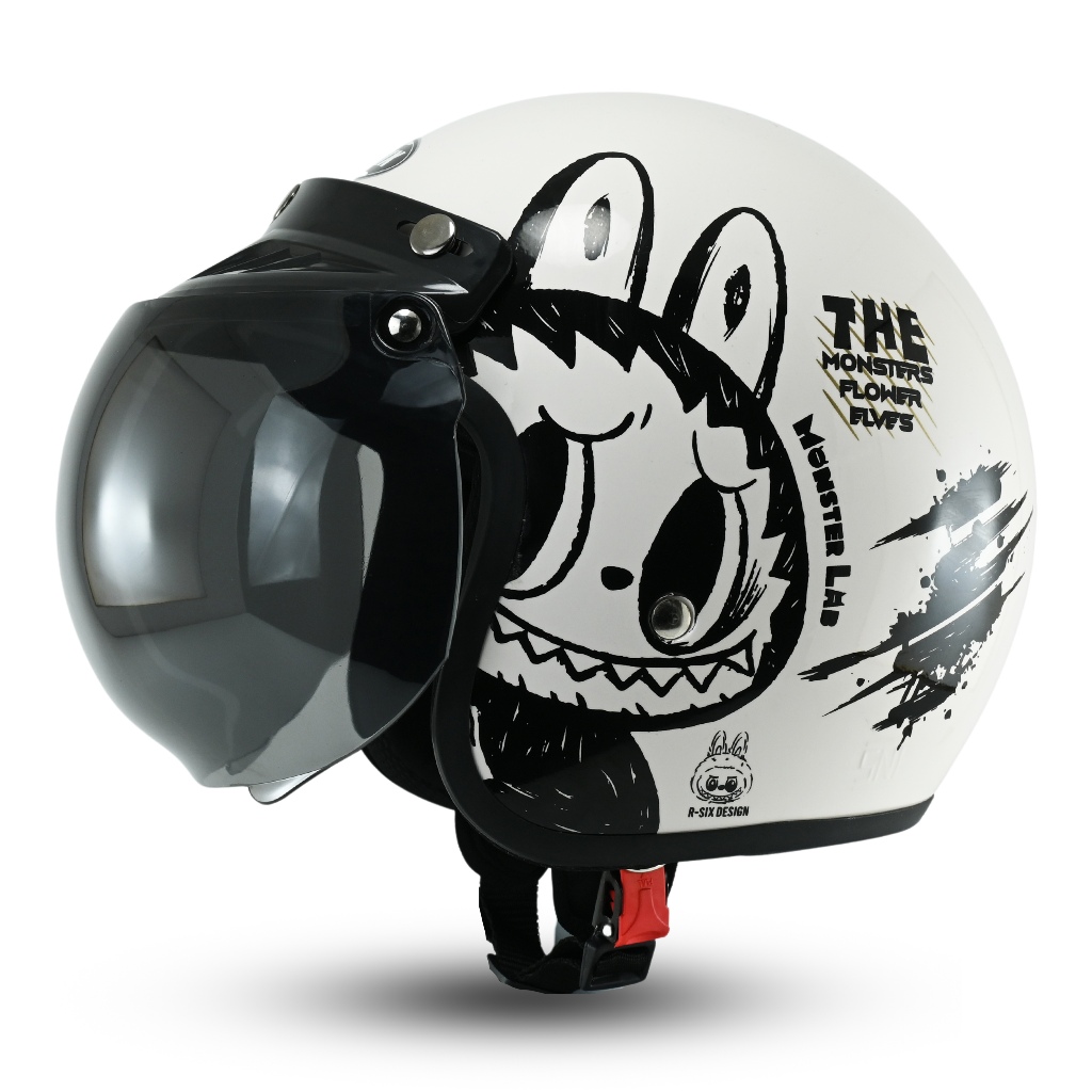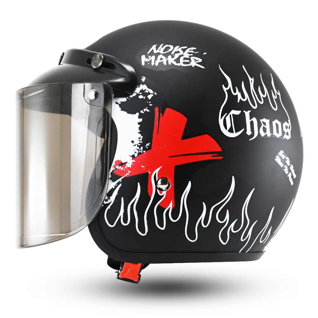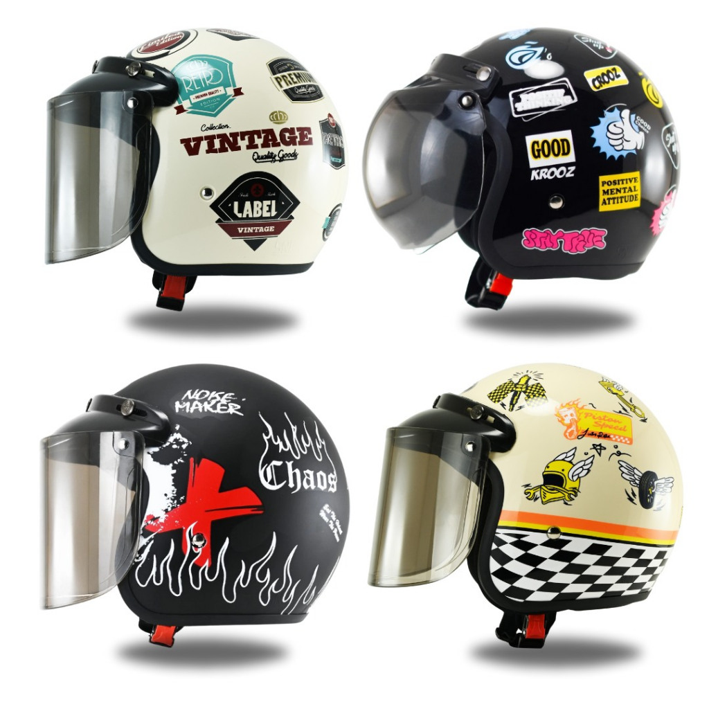 | Helm Bogo Retro Motif One Piece | Helm Pria Wanita SNI | Desain Klasik Kaca Datar | Helm Motor Styli
