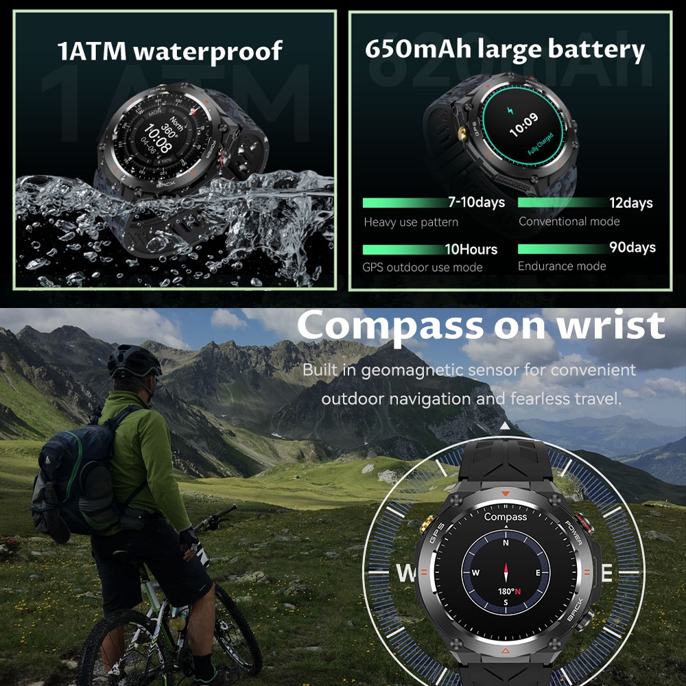 TIMEVER KC82PRO AI chatGPT Adzan Reminder Muslim GPS Jam Tangan bluetooth call smartwatch ketinggian tekanan udara dan k