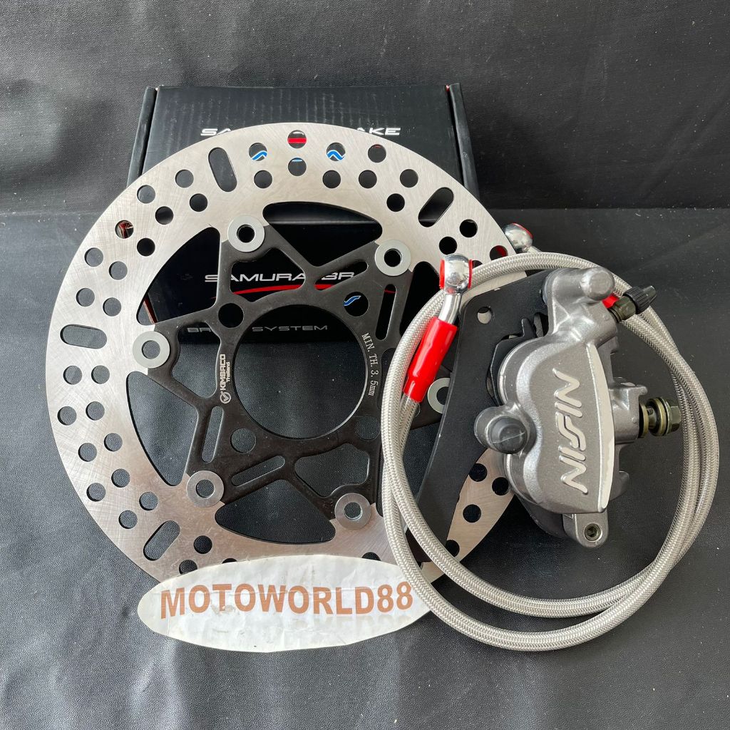 KALIPER SAMURAI 2PISTON NIZZIN + DISC CAKRAM 220MM + BREKET BEAT SCOOPY VARIO GENIO MIO SMILE XEON MIO KARBU MIO SPORTY