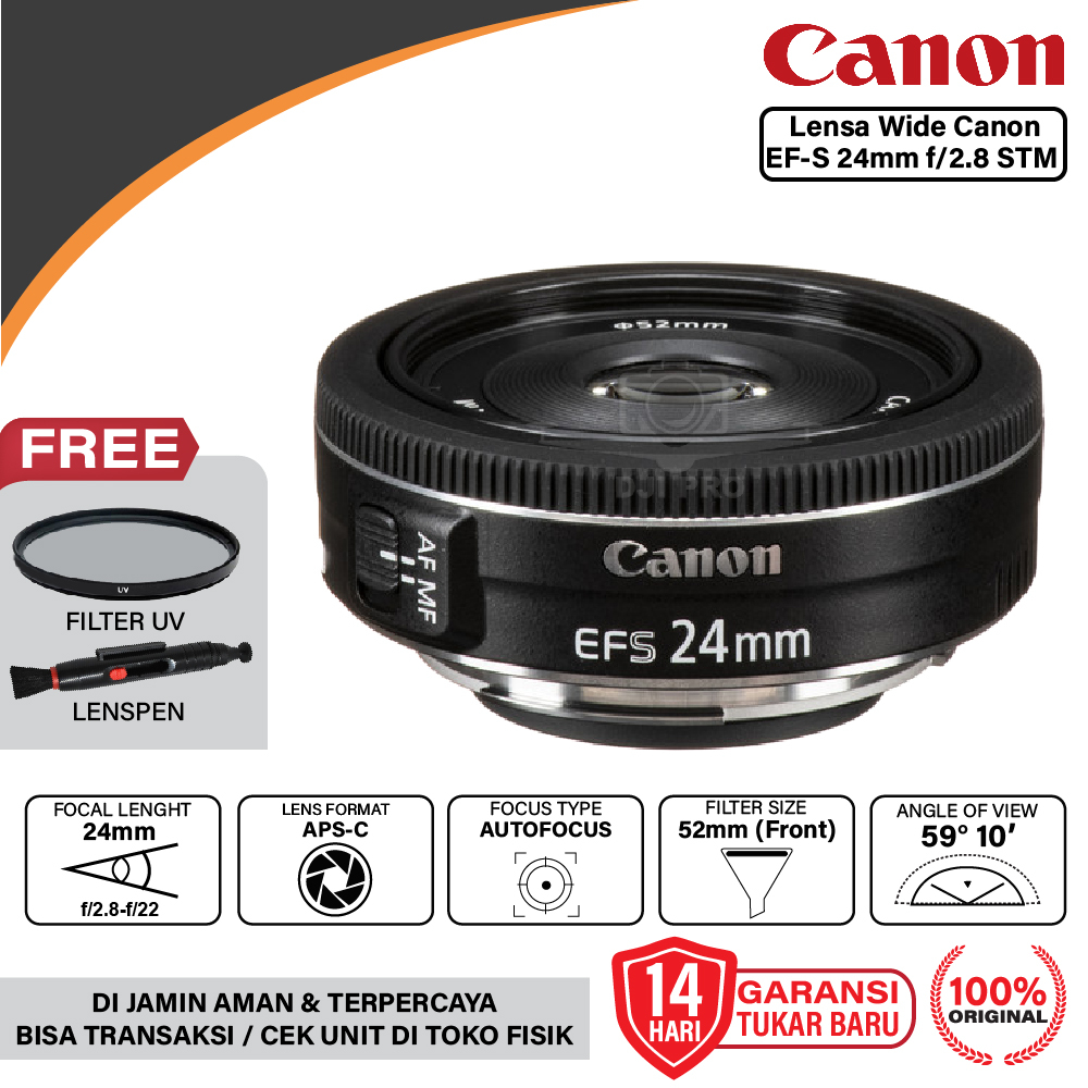 Lensa Wide Canon EF-S 24mm F2.8 STM BONUS Filter UV