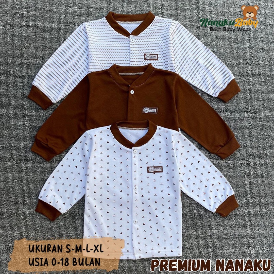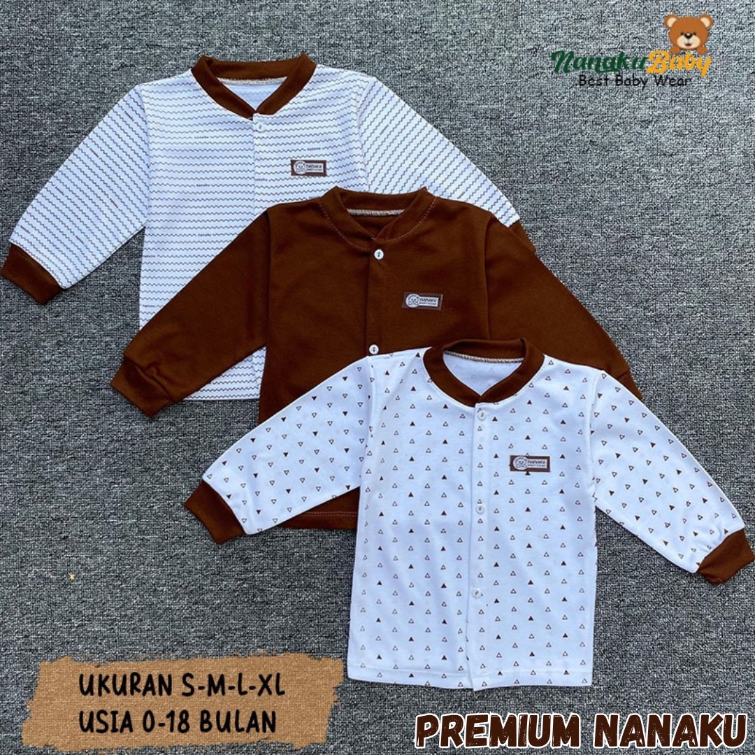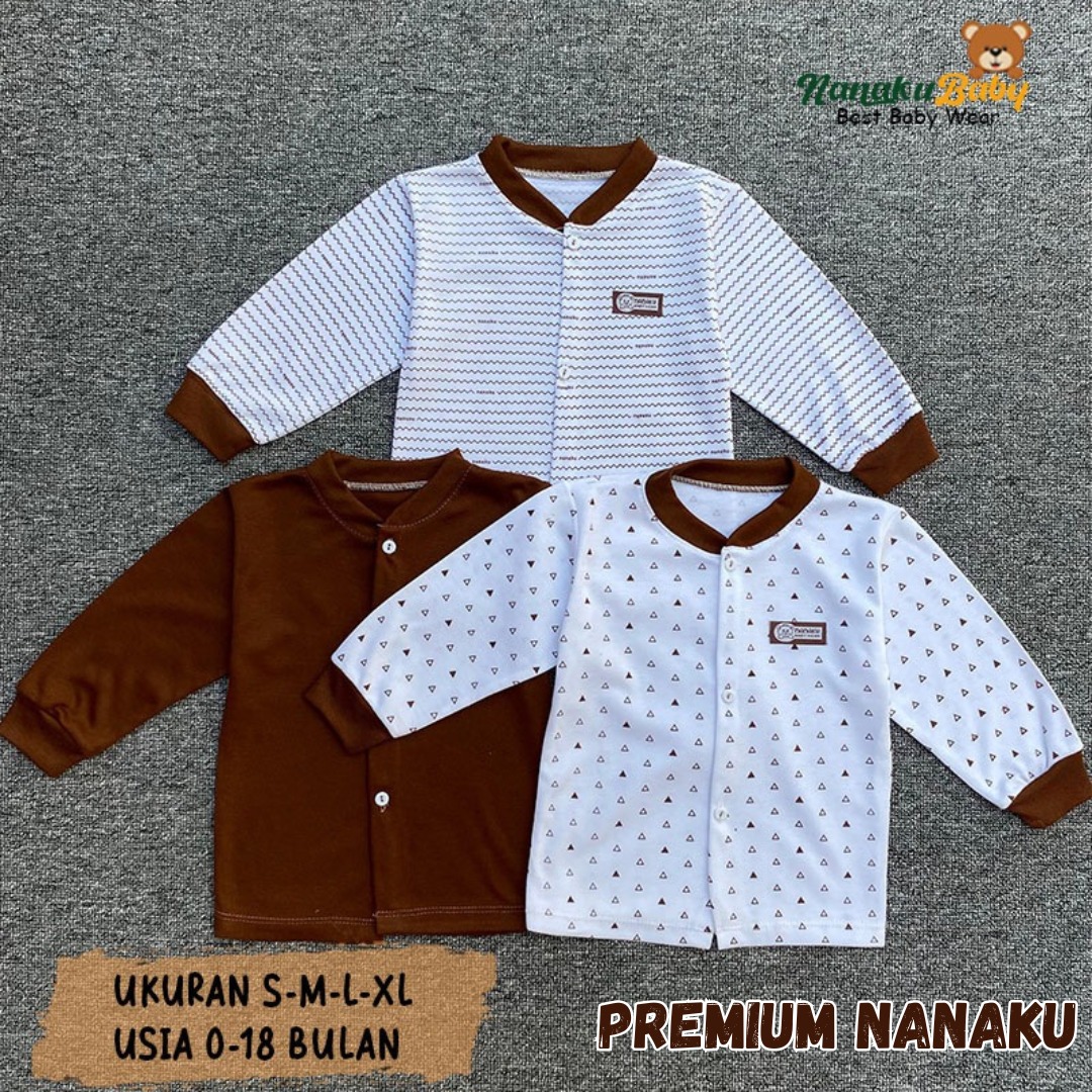 Nanaku Baby - Isi 3 PCS Baju Panjang Bayi Kancing Depan Katun TC Double Premium Seri Mahogany Ukuran S M L XL 0-18 Bulan