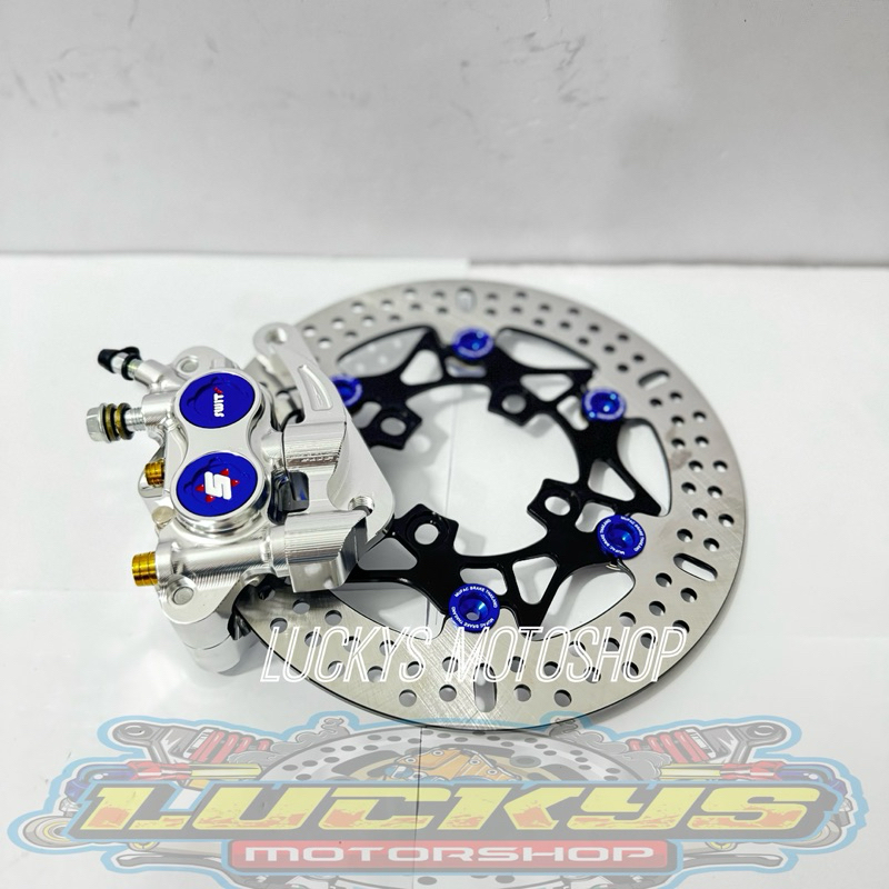 PAKET KALIPER MONOBLOK 4 PISTON SWITS + DISC CAKRAM 220MM + BREKET PNP BEAT, VARIO, SCOOPY, MIO SMILE, MIO SOUL, XEON,DL