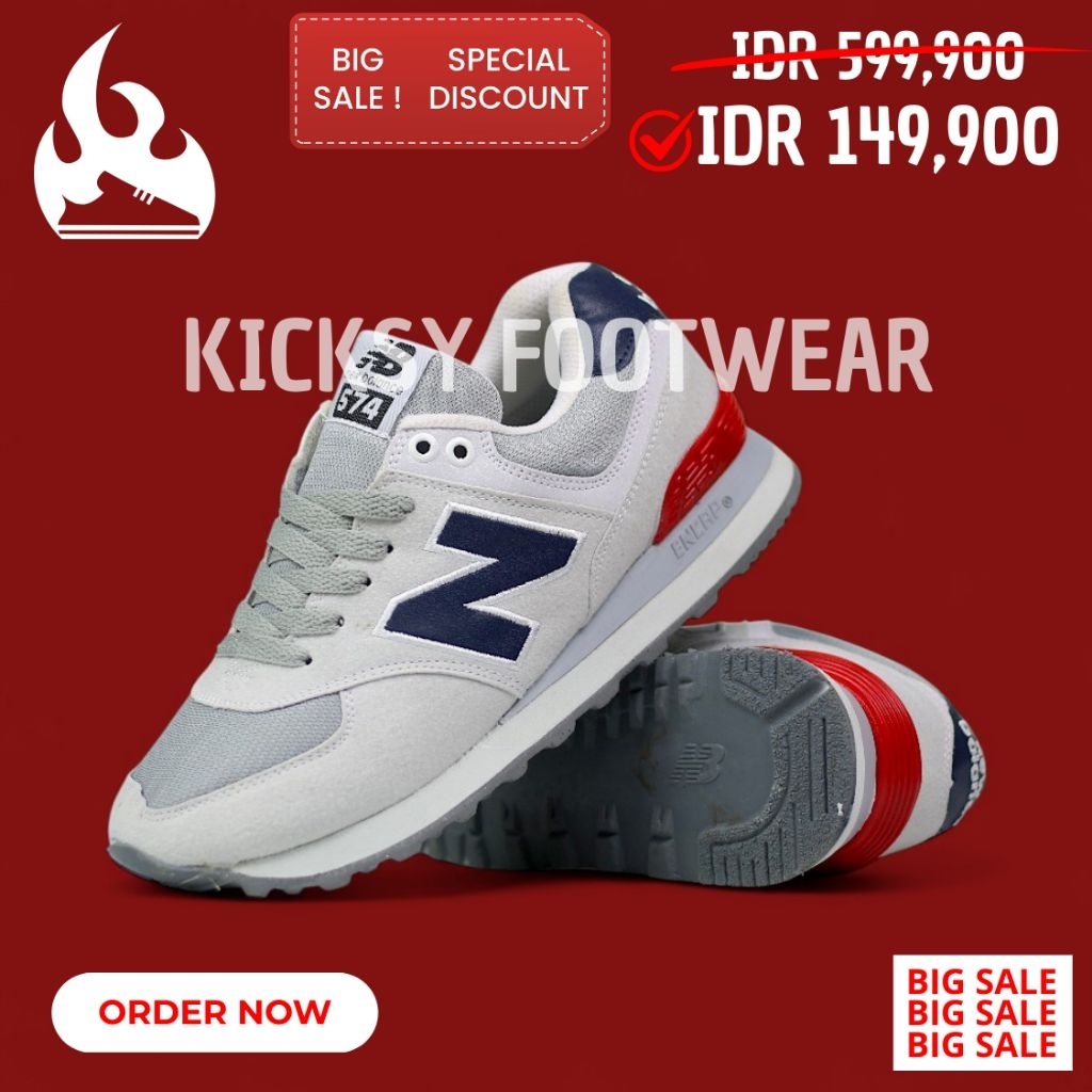 Sepatu Kasual New 574 Sneakers Unisex Pria Wanita Gray Navy Red Best Seller New Balance Original