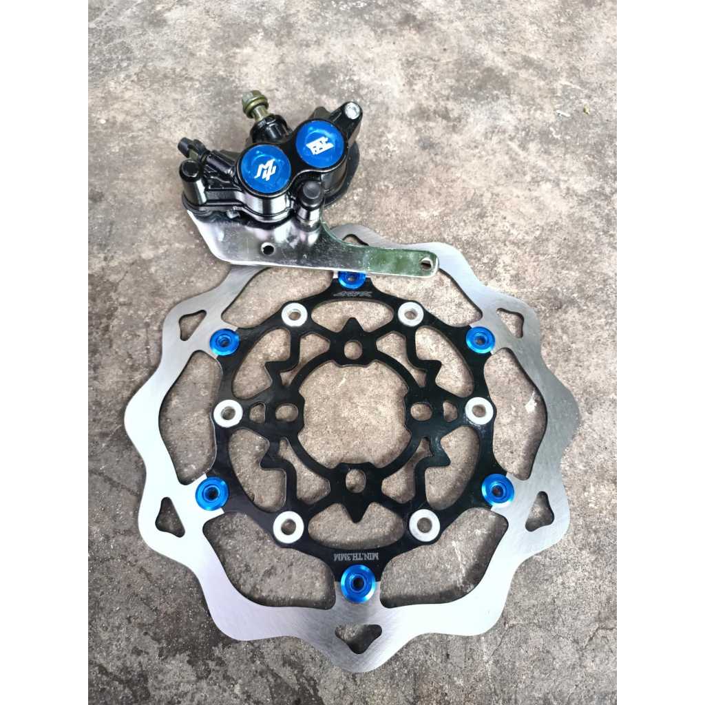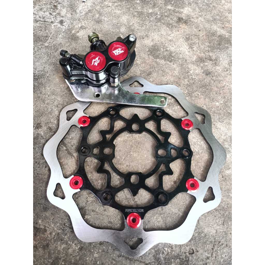 Paket kaliper 2p sb mufac black koin warna kiri plus breket 260mm besi plus disk 260mm model galfer PNP beat scoopy Vari