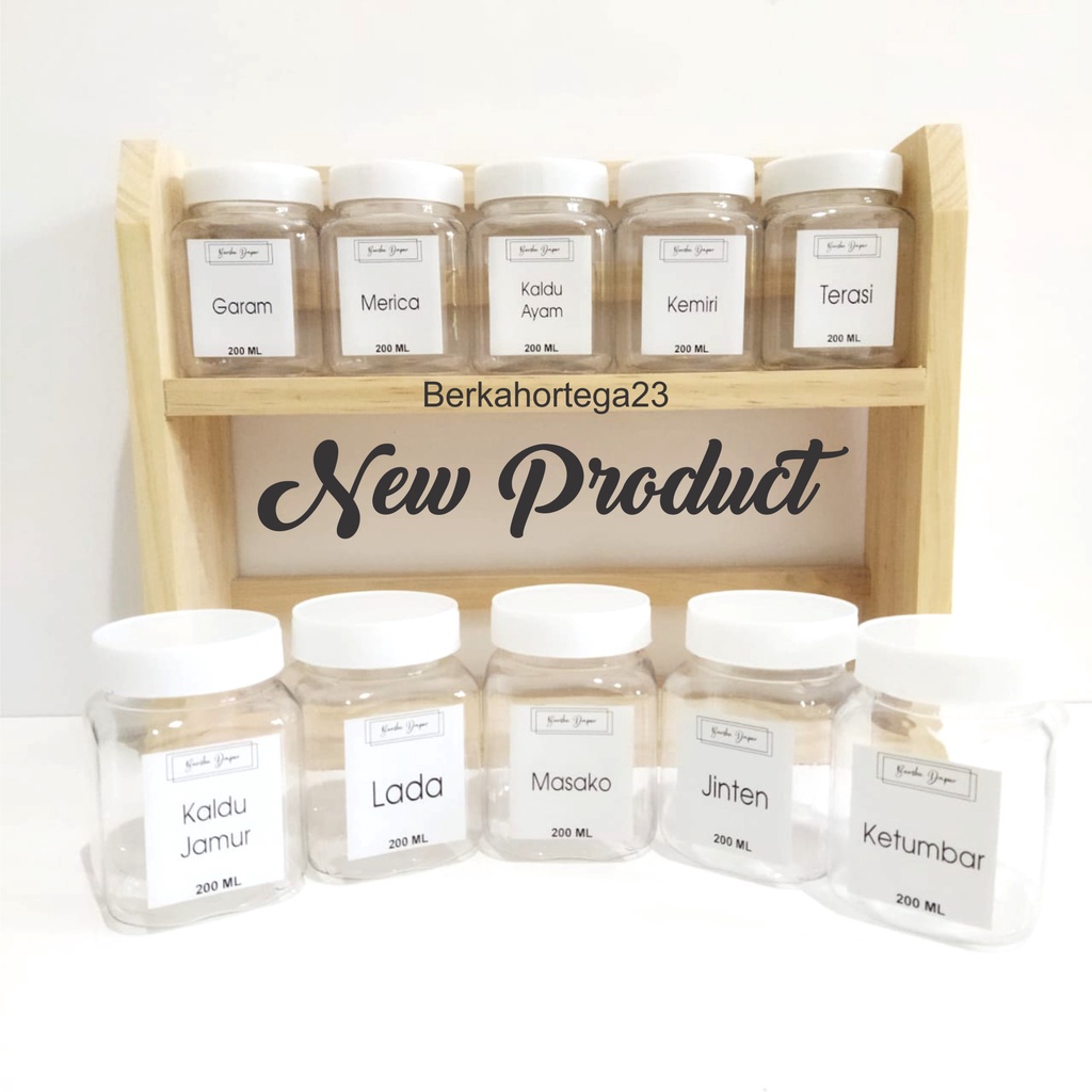 SET TEMPAT BUMBU DAPUR Tempat Bumbu Kayu 2 Susun Dengan 10 Toples dan 10 Stiker Bumbu