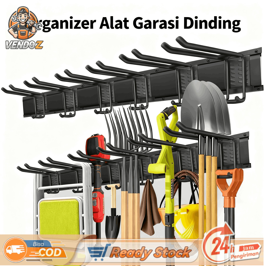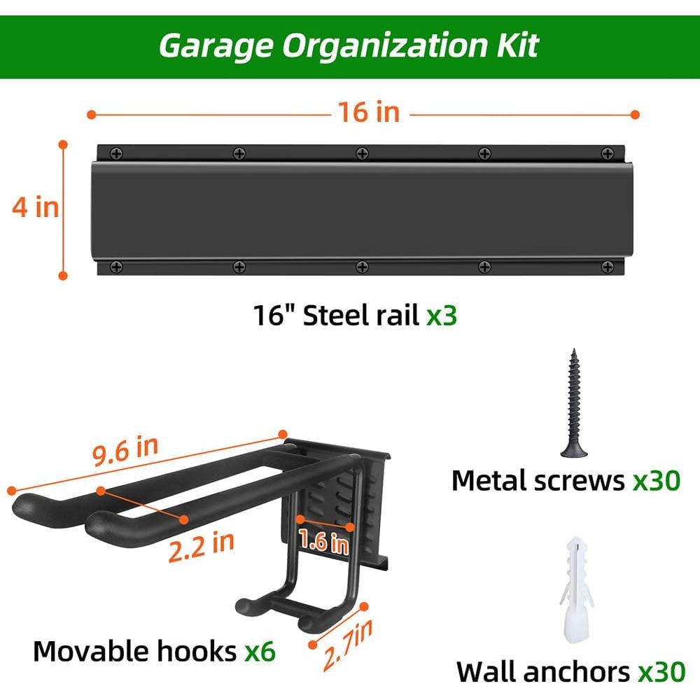 [PROMO] Garage Tool Organizer Wall Mount with 48 inches Rails and 6 Doublelayer Hooks Garden Tool Rack H