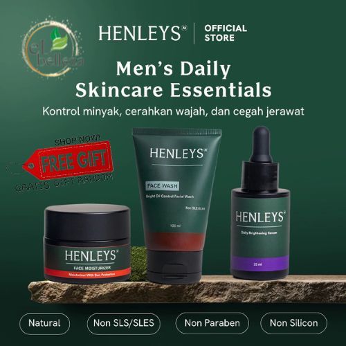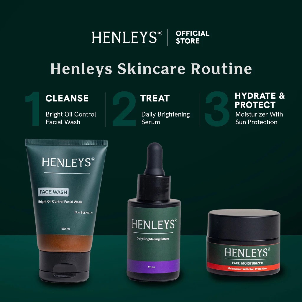 Henleys Men’s Daily Skincare Essentials | Facial Wash | Moisturizer | Brightening Serum | Mengontrol Minyak, Mencerahkan