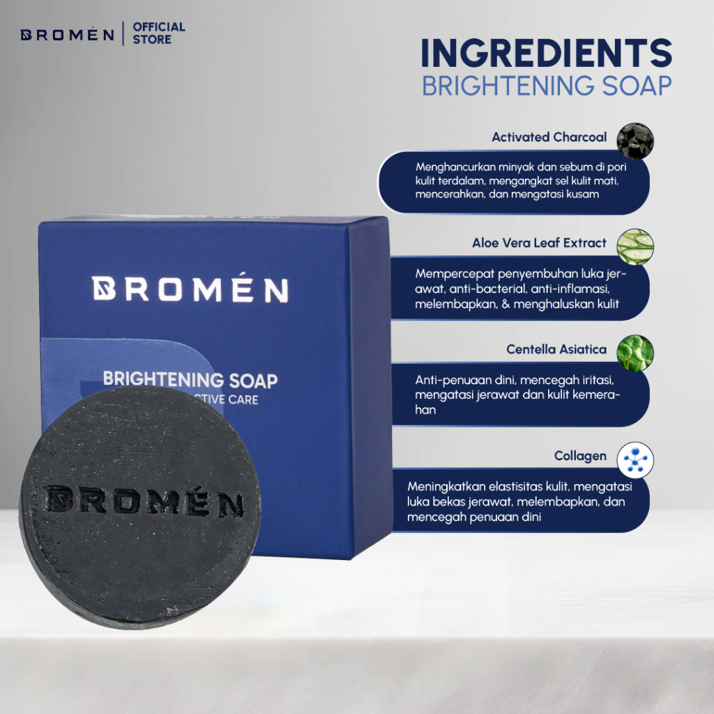 BROMEN Brightening Soap & Serum - Sabun Cuci Muka dan Serum Pemutih Pria ( FREE SOAPCASE )