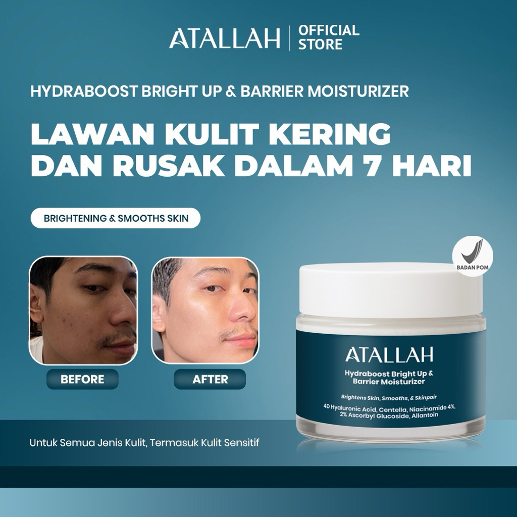 ATALLAH Hydraboost Bright Up & Barrier Moisturizer Gel 30g | Pelembap Wajah Pria | Cream pencerah Wajah | Skincare BPOM
