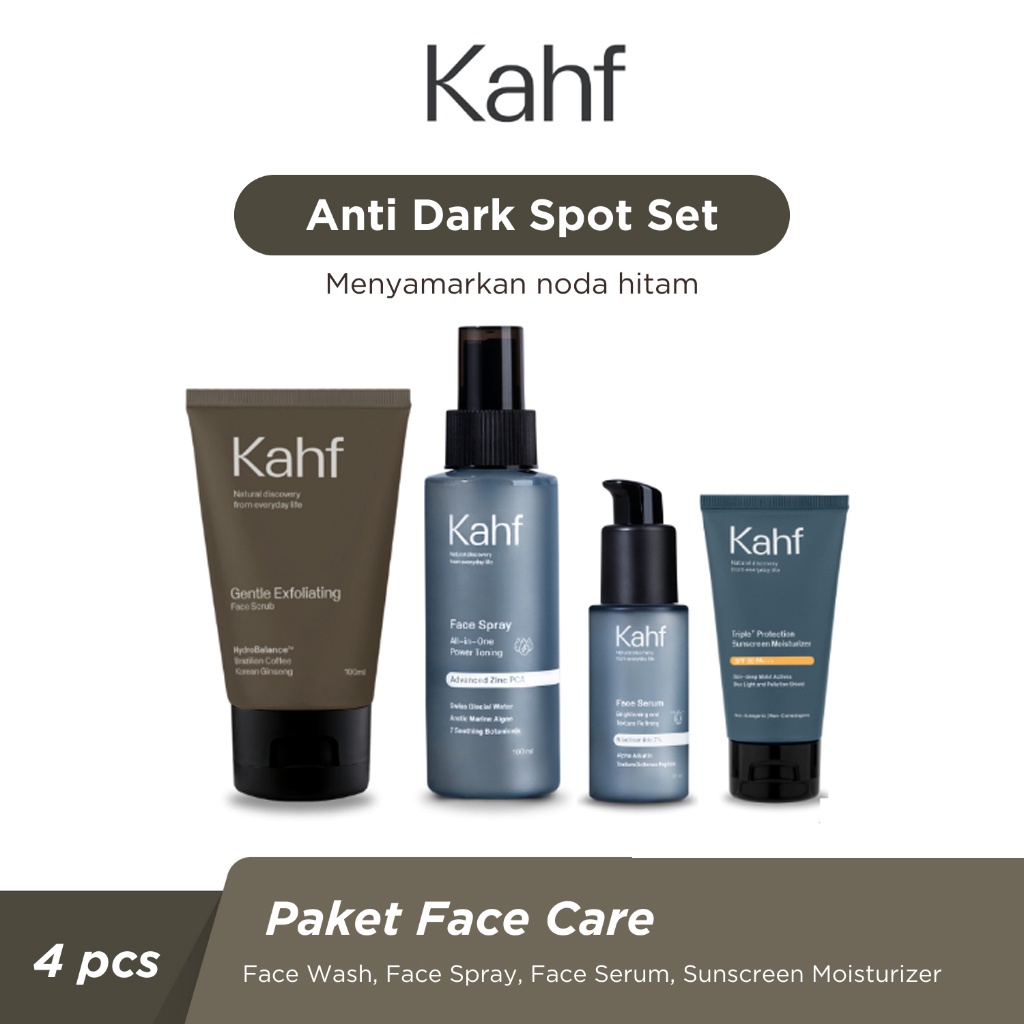 Kahf Paket isi 4 Skincare Pria [Facial Foam + Face Serum + Face Spary + Sunscreen SPF 30 PA+++]