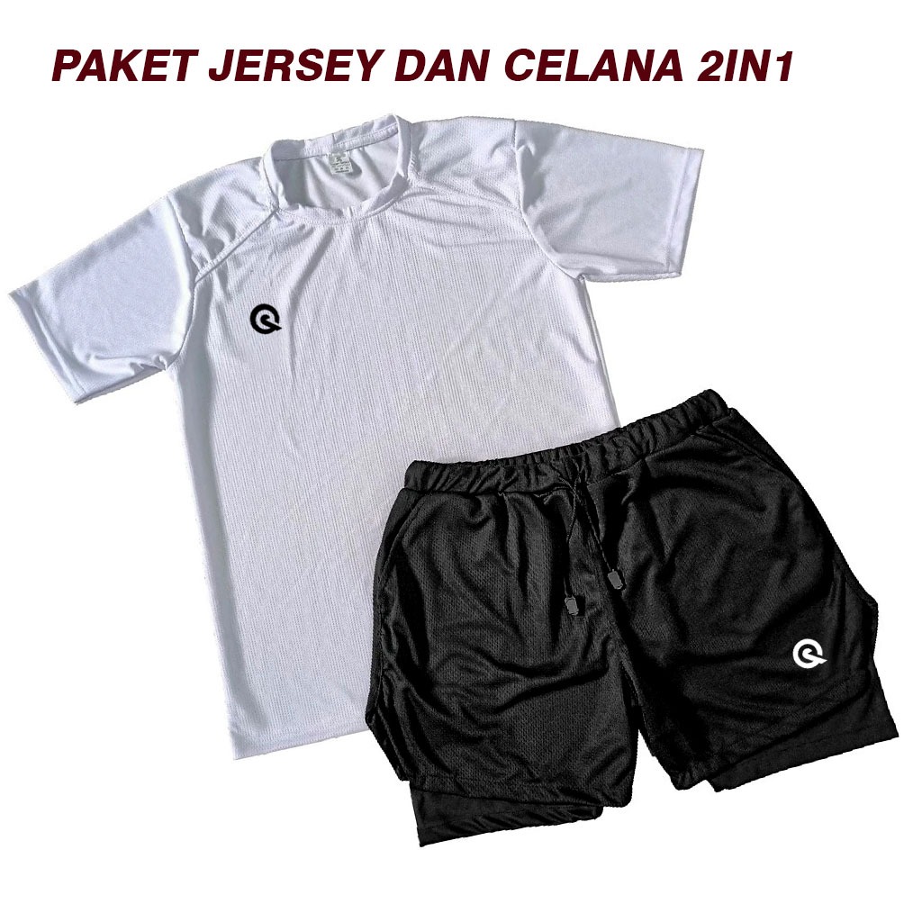 Setelan Olahraga Pria Double Layer 1 Set Baju Jersey Kaos Dryfit Celana Pakaian Outdoor Running gym lari Badminton Volly