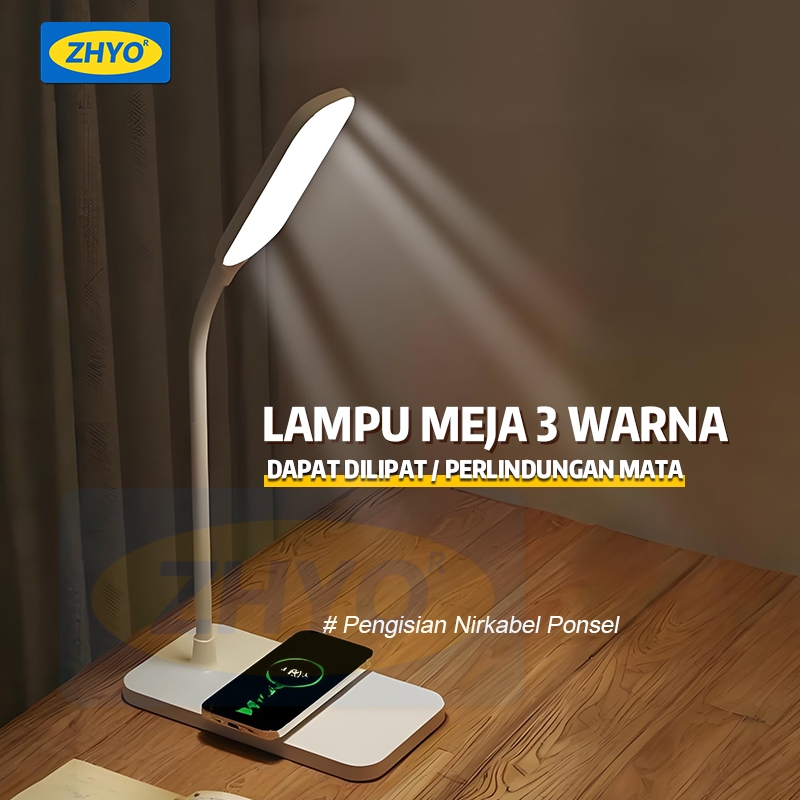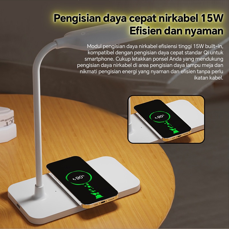 [PROMO] Lampu Meja LED 3 Warna Dapat Dilipat Pengisian Daya Nirkabel untuk Ponsel Lampu Belajar Lampu