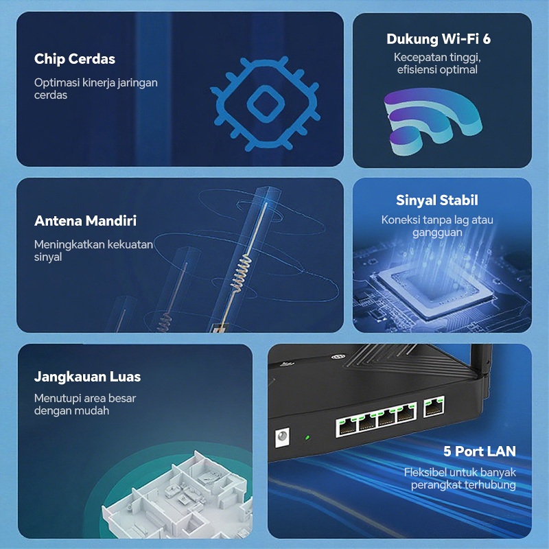 [PROMO] Router WiFi Gigabit WIFI‑6 1200Mbps 6 Antena Tembus Tembok 5 Port LAN Gigabit Sinau Game & St