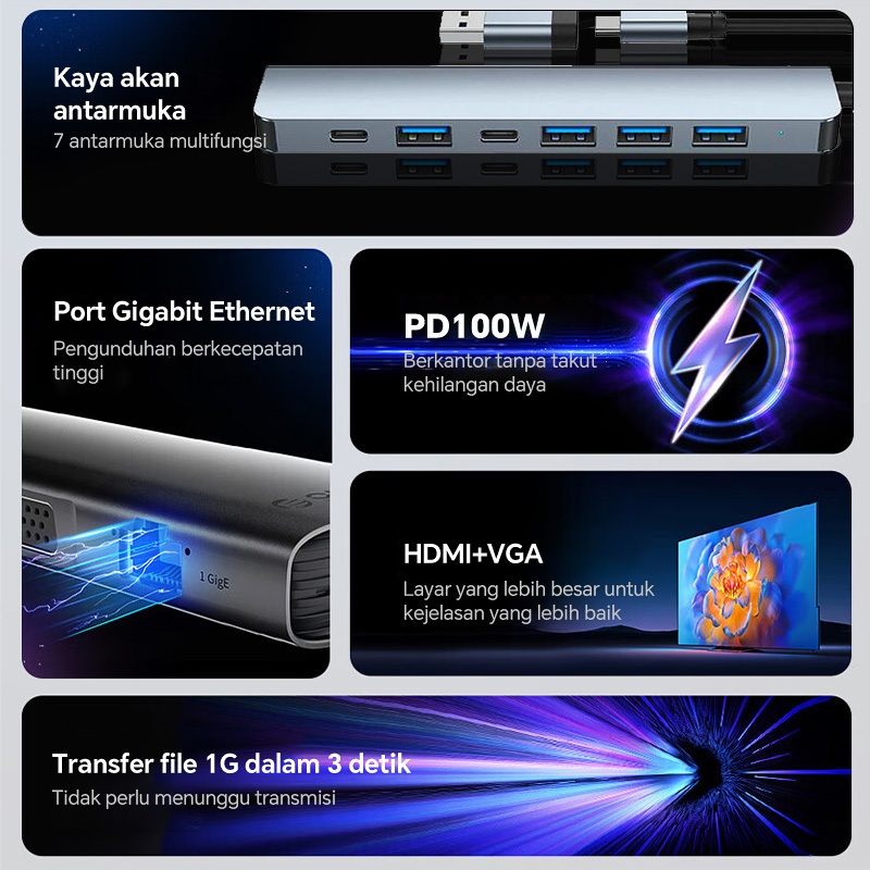 [PROMO] TypeC Hub 8in1 USB3.0 Adapter Multiguna dengan Pembaca Kartu dan HDMI
