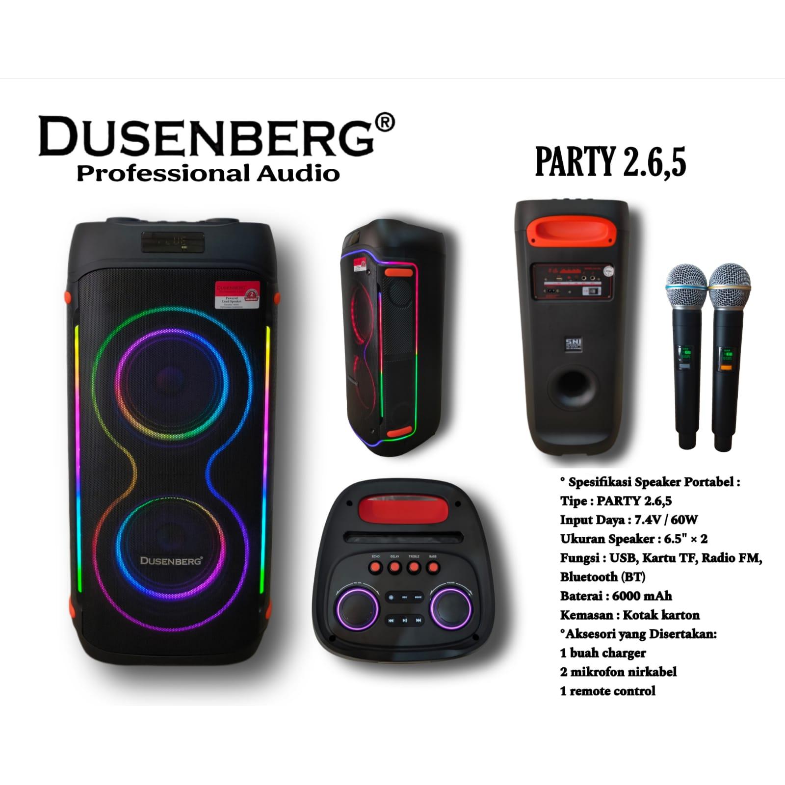 Speaker Portabel DUSENBERG PARTY 2.6,5 Dua Mic Wireless Original Bluetooth