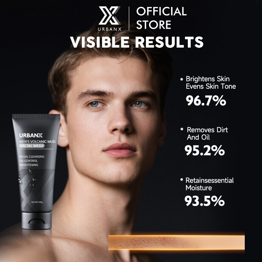URBANX Men's Volcanic Mud Face Wash 100g Brightening Oil-control Niacinamide WHITENING Unclogs Pores