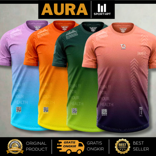 Jersey AURA Baju Running Kaos Olahraga Lari Pria Atasan Runing Bahan Dryfit Menyerap Keringat