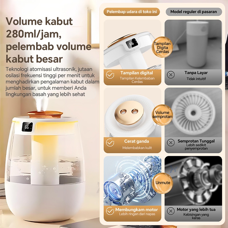 [PROMO] Humidifier 2.2L rumah senyap pelembap udara meja kecil dengan dua semprotan dan banyak kabut coc
