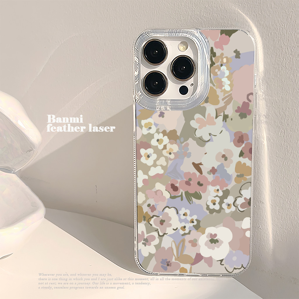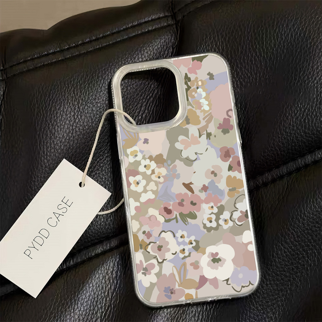 PYDD CASE Perak IMD hard case premium estetik aesthetic Pola bunga yang memenuhi layar casing hp cocok untuk iPhone 13,