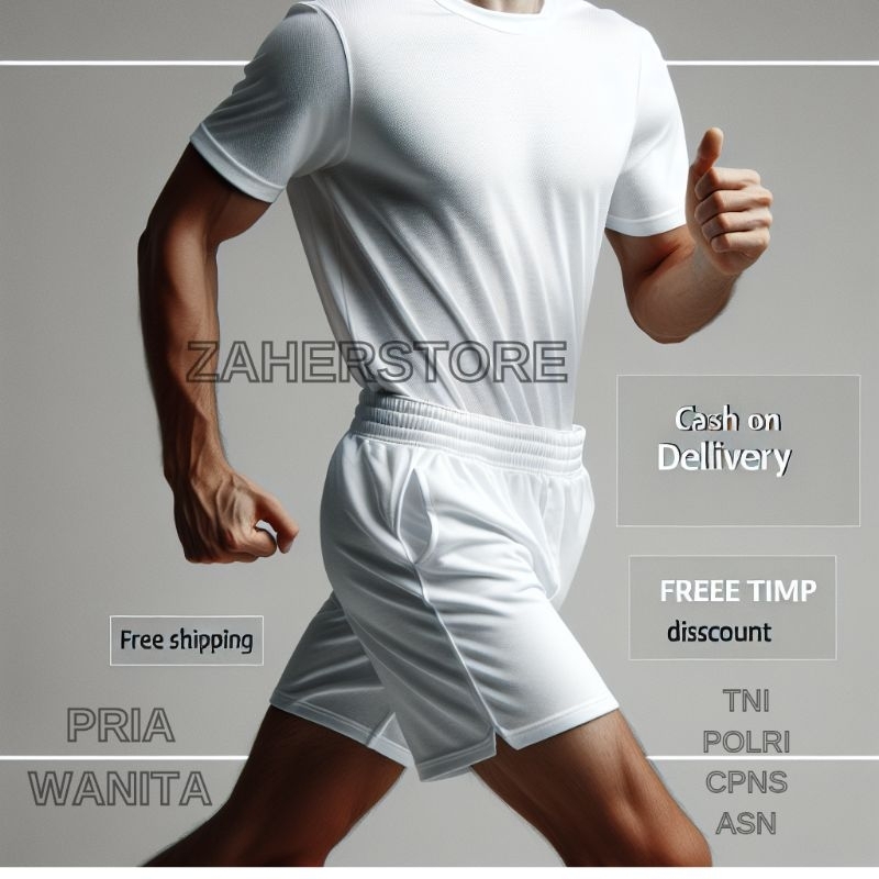 SETELAN OLAHRAGA RUNNING / GYM / BAJU PUTIH POLOS TES PENDIDIKAN TNI POLRI PRIA / WANITA