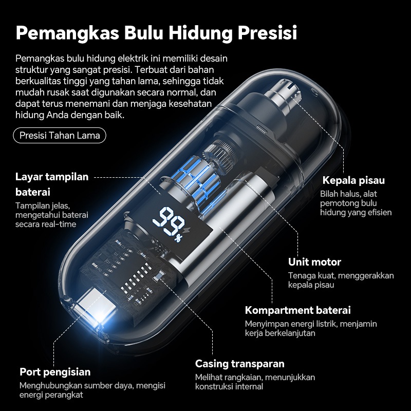 [PROMO] Pemangkas Bulu Hidung Elektrik Serbaguna Cukur Hidung Telinga Alis Pria Wanita USB Isi Ulang Min