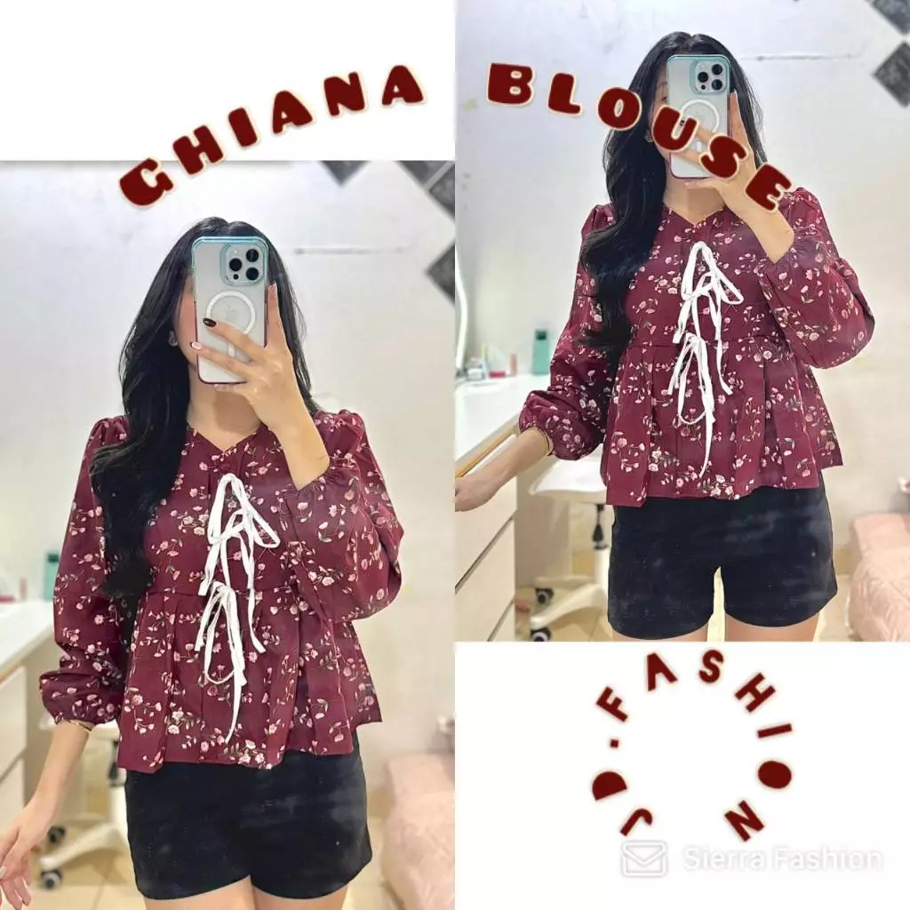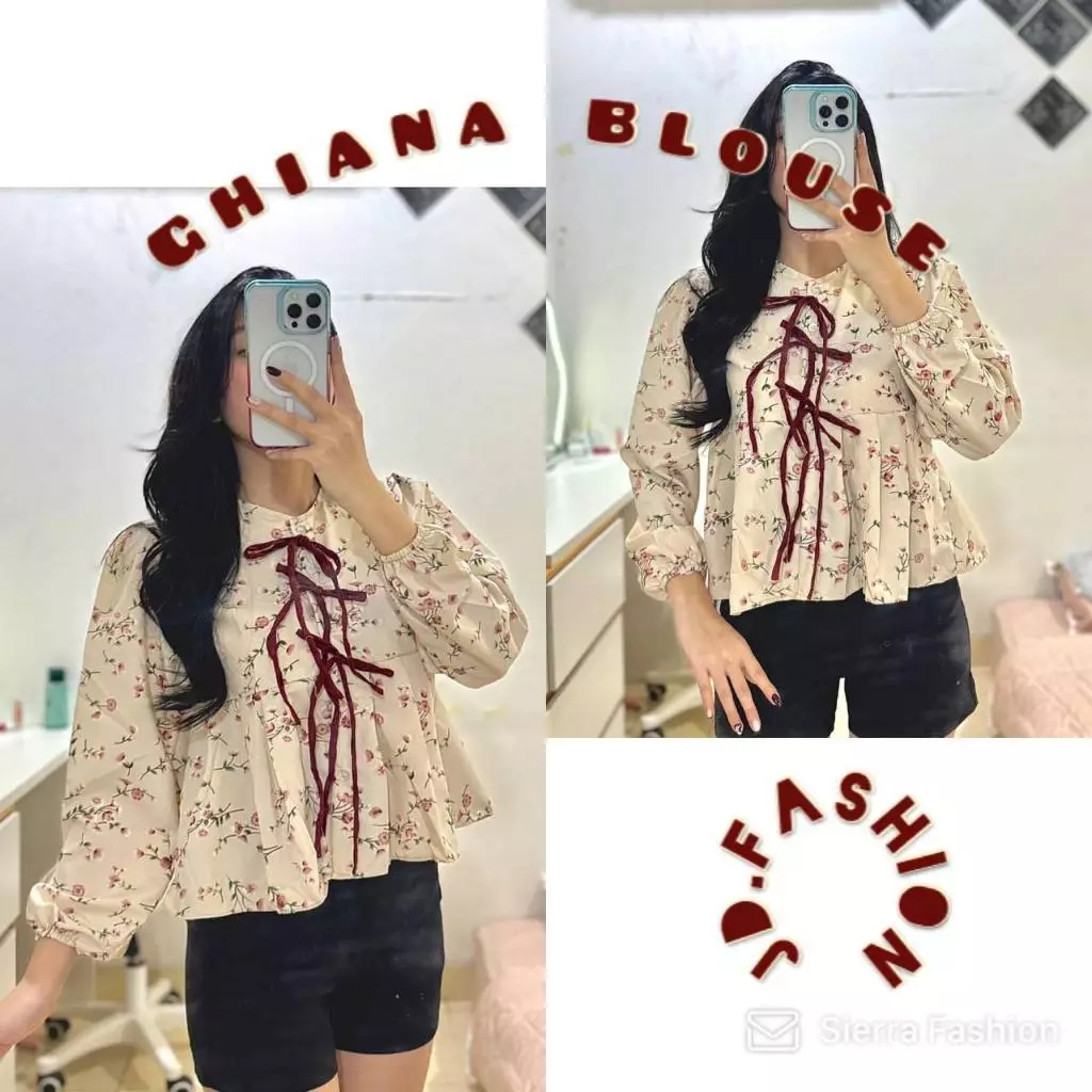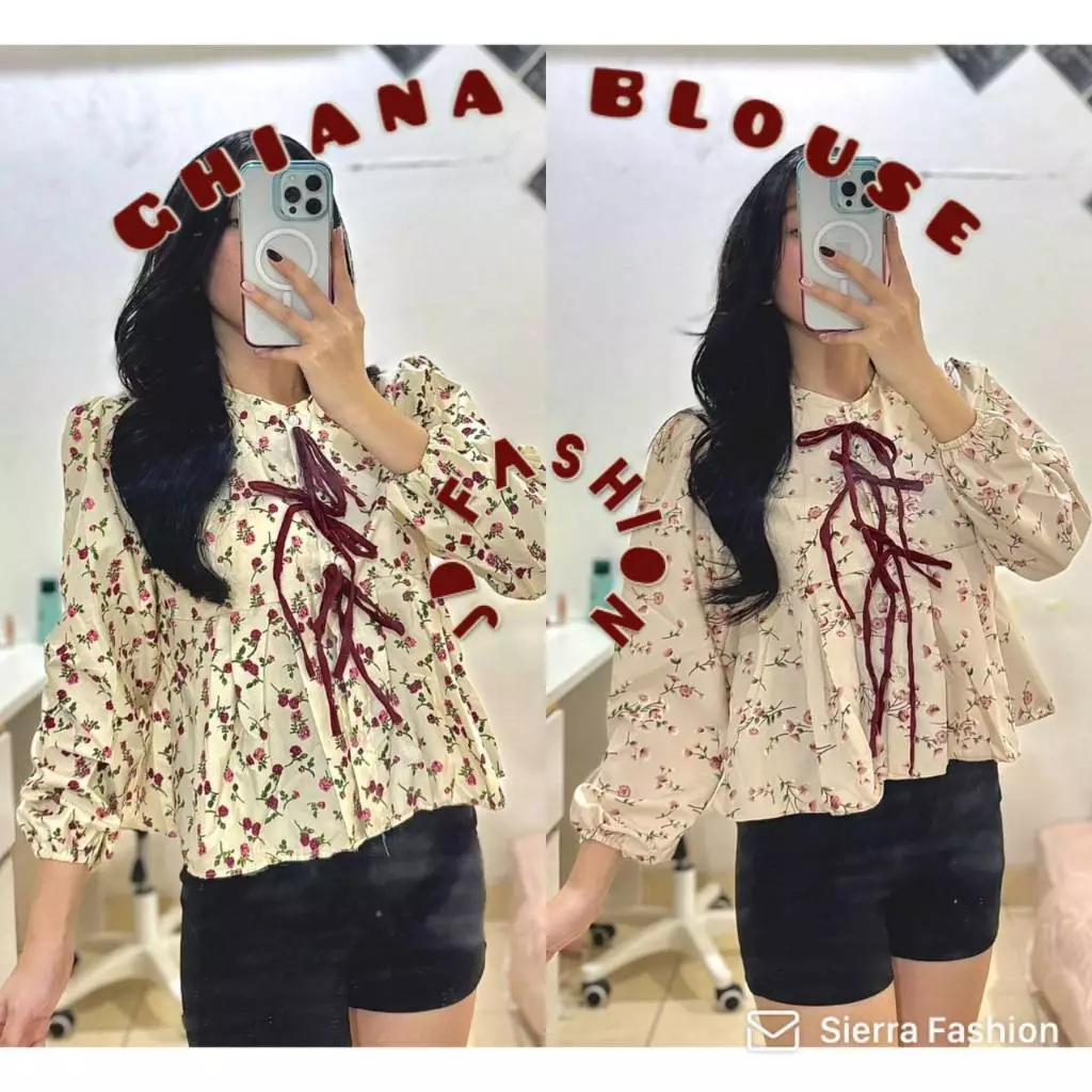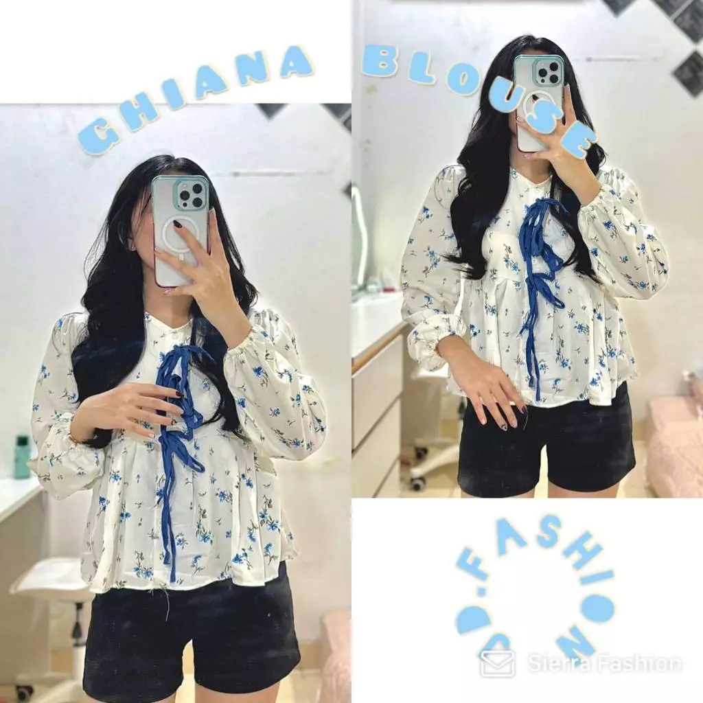 Atasan Wanita Kekinian Ghiana Coquette Premium Ribbon Series Blouse Wanita Korean Style Lengan Panjang Bunga Bunga Murah