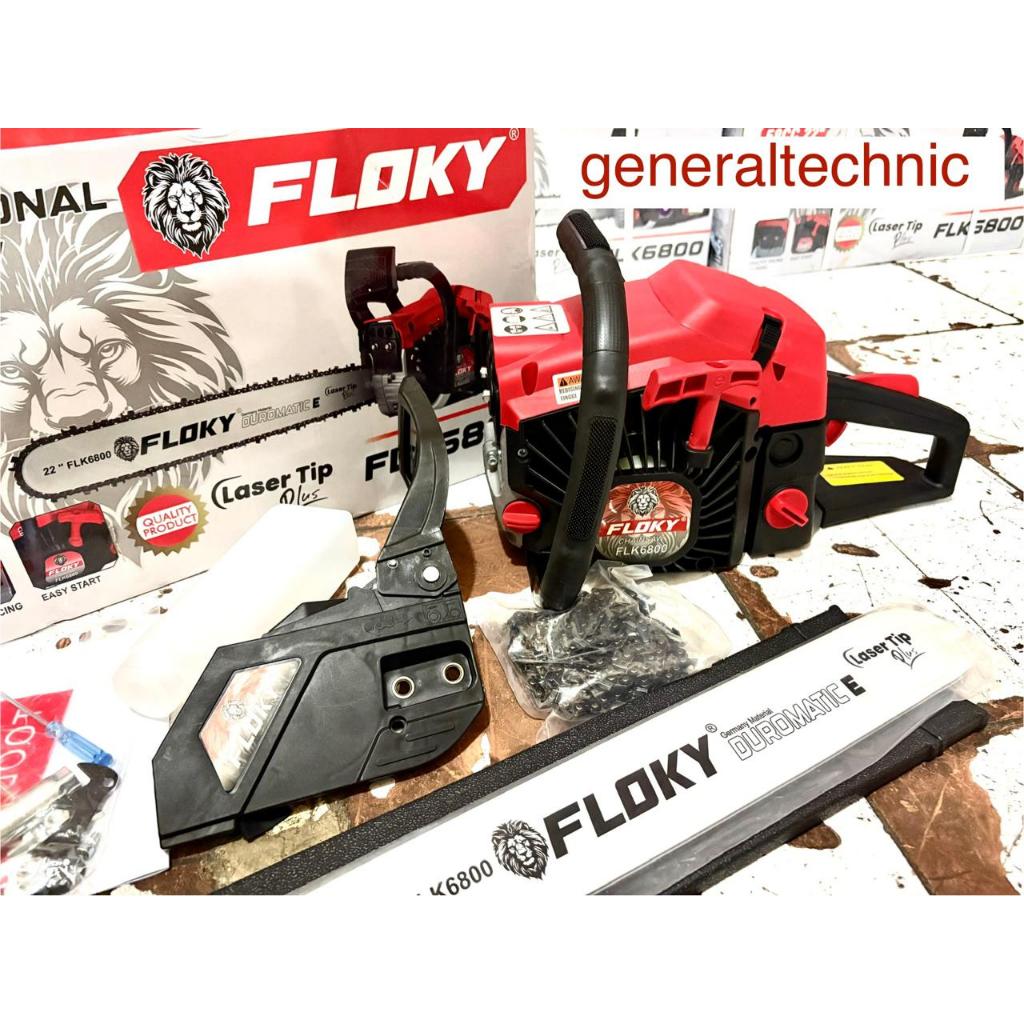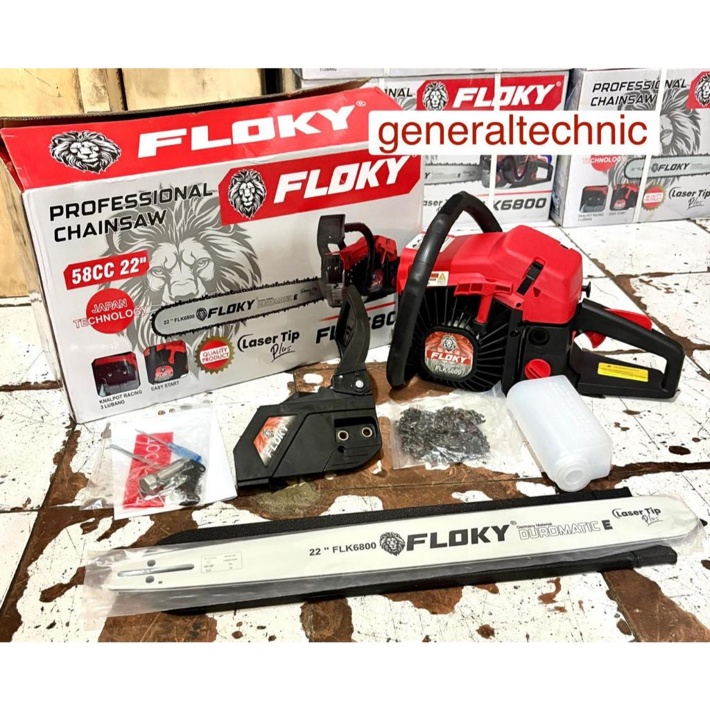Chainsaw Floky 6800 (58cc) Bar Laser 22" Mesin Gergaji Kayu Bar Lasertip Baja 22" Floky FLK6800