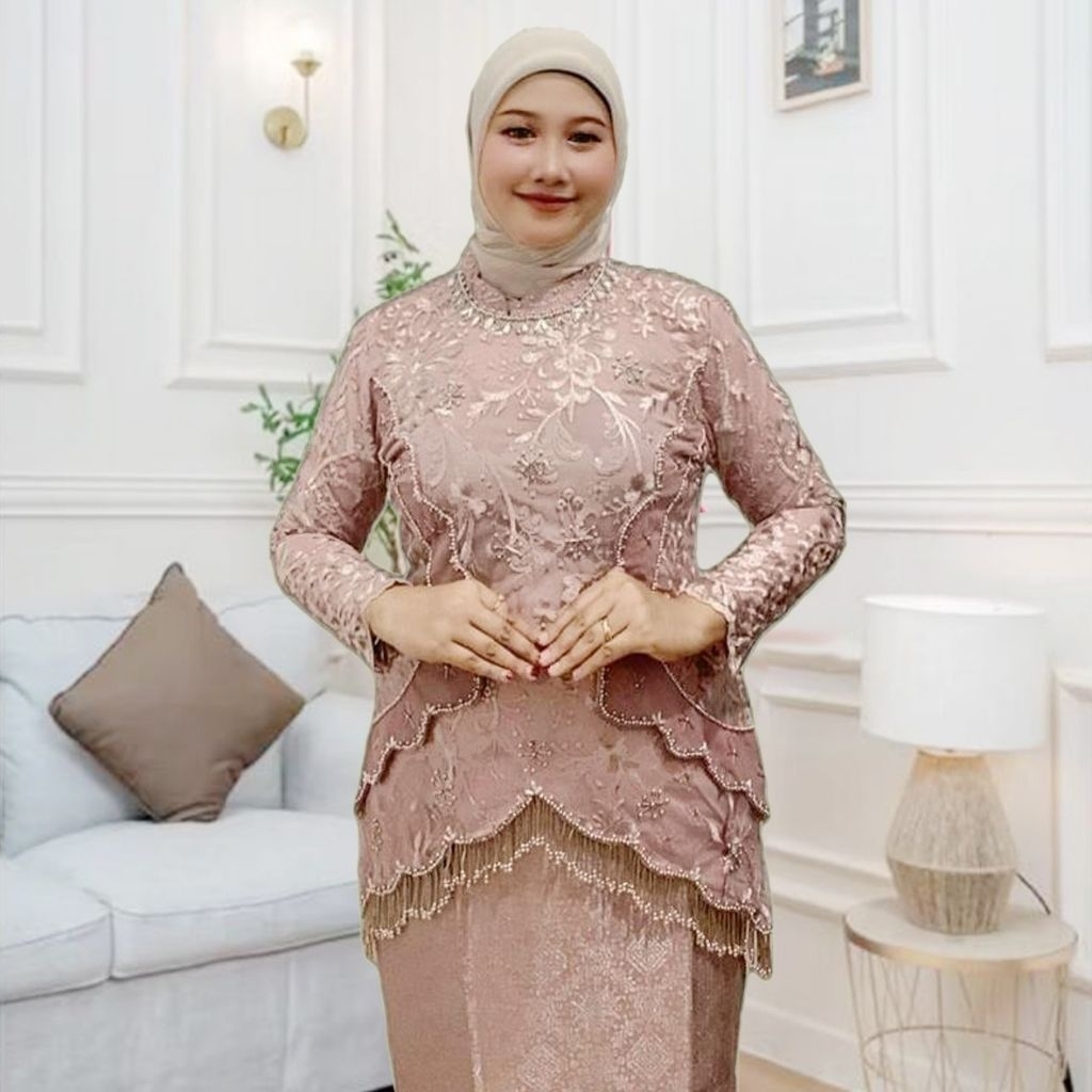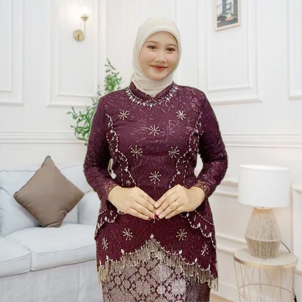SM Kebaya / Kebaya Rumbai Payet Mewah Setelan Songket / Kebaya Wisuda Mewah Terbaru / Kebaya Emerald Modern / Kebaya Pay