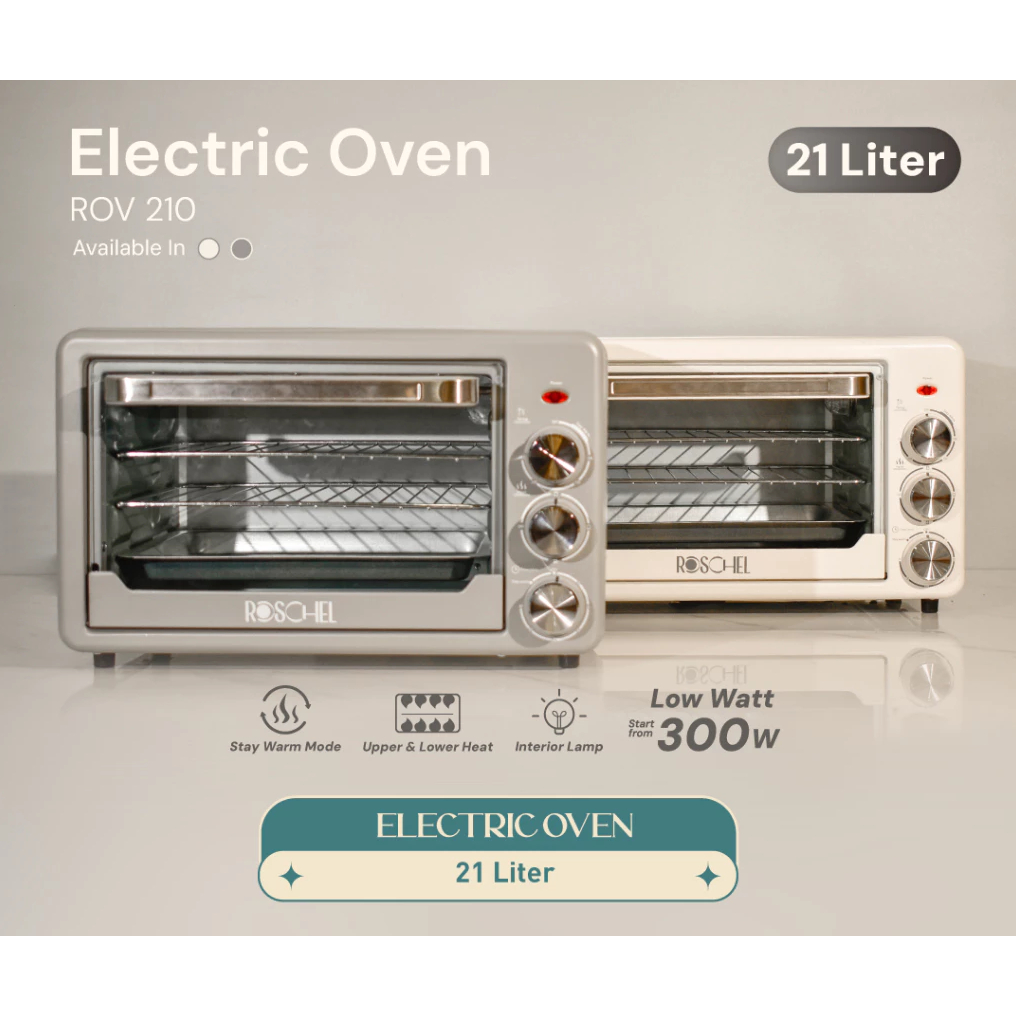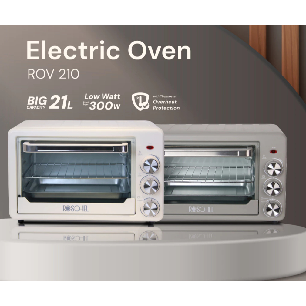 ROSCHEL ROV-210 Oven Listrik Toaster Low Watt 21 Liter (2x300 Watt, Api Atas Bawah)