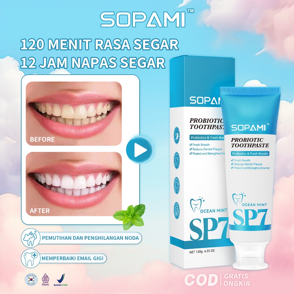 SOPAMI SP7 Pasta Gigi 120gr Siang Hari Whitening Clean Plak Alat Pembersih Karang Gigi Melindungi Gusi Rasa Ocean Mint