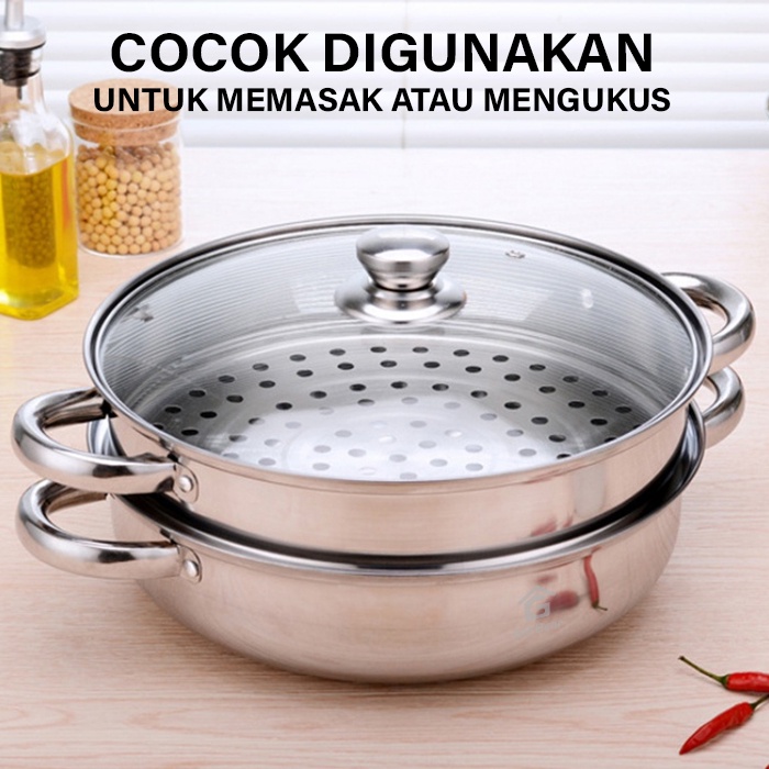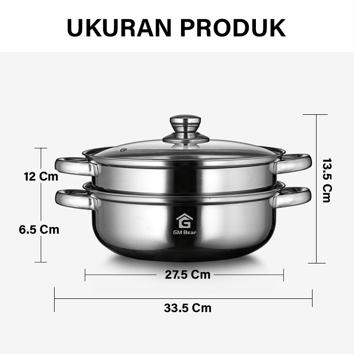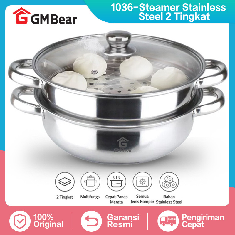GM Bear Steamer Stainless Panci Kukus 2 Tingkat 1036-Steamer Stainless Steel