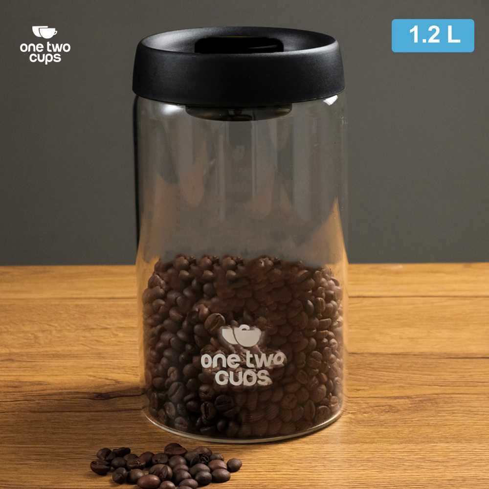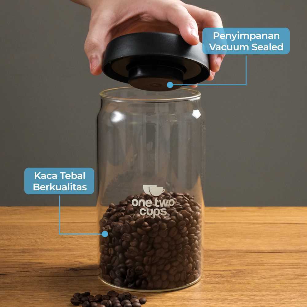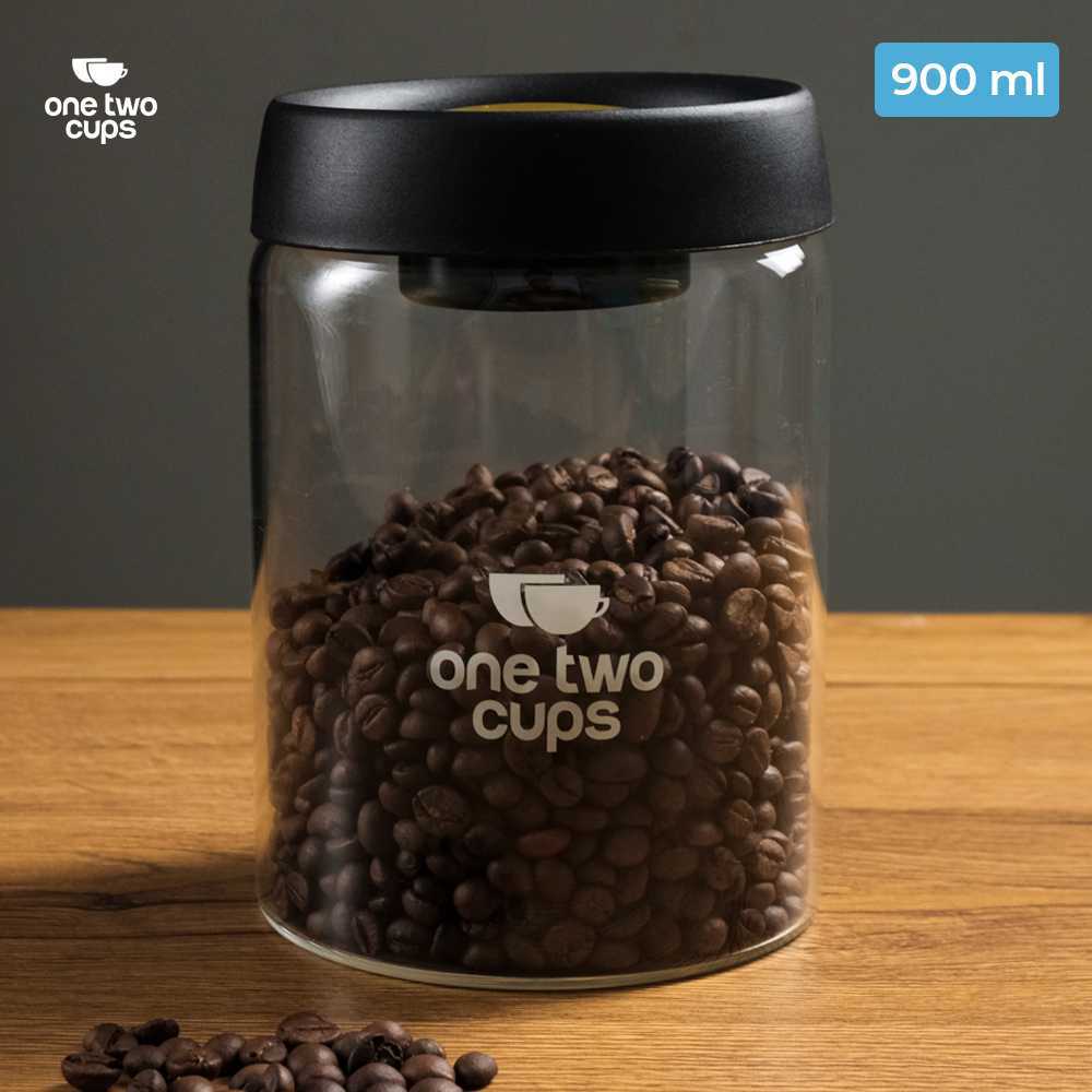 One Two Cups Toples Kaca Biji Kopi Coffee Beans Vacuum Sealed Lid - SE41-Hitam
