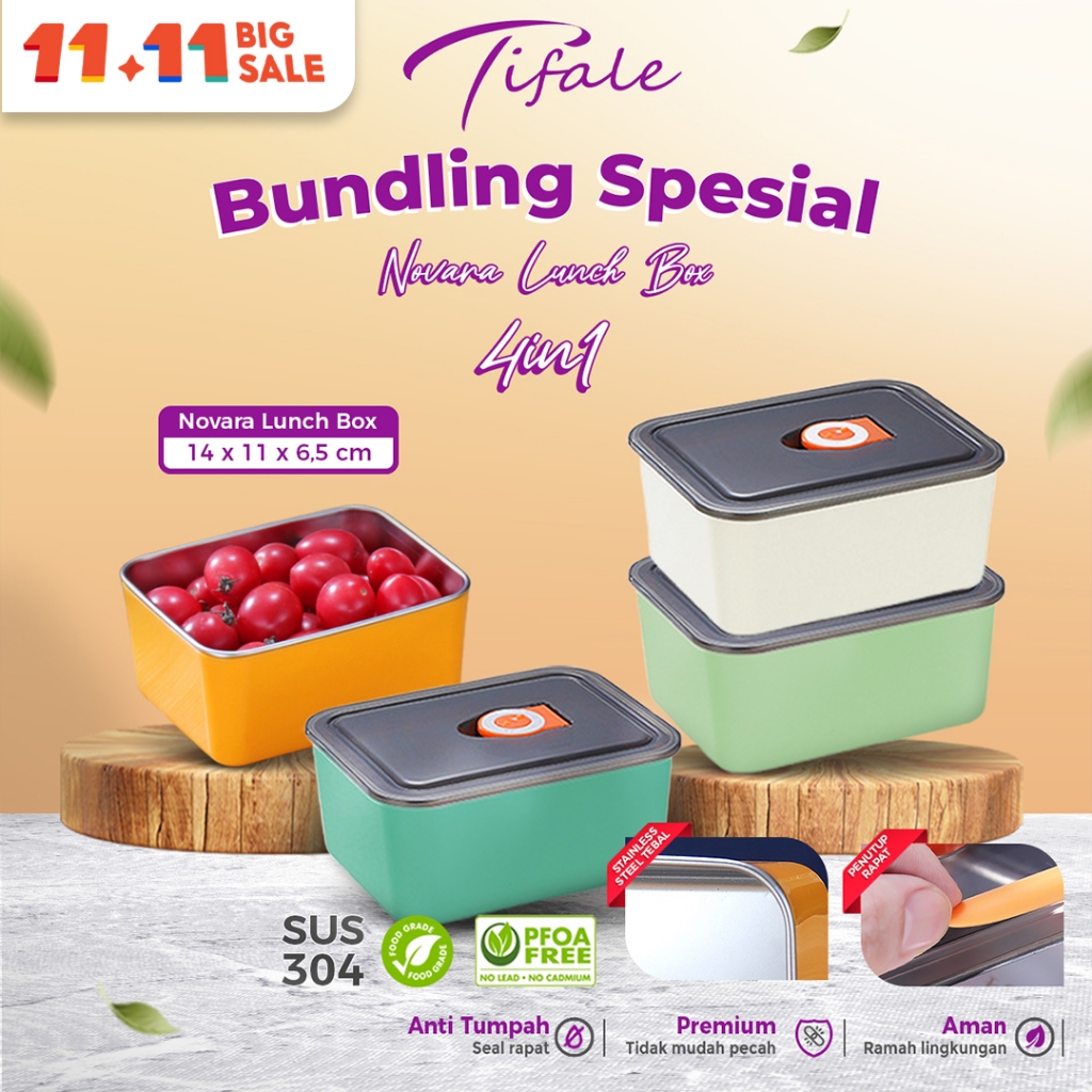 Tifale Kotak Makan Bekal Stainless Steel 4 PCS Kedap Udara Lunch Box Penyimpanan Makanan kotak mpasi