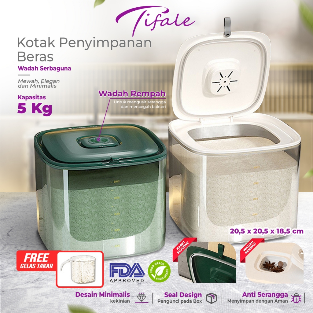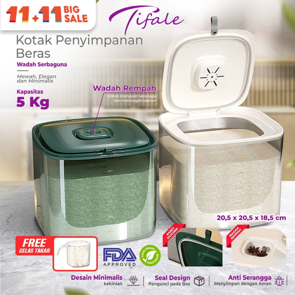 Tifale Kotak Tempat Penyimpanan Beras Bahan Makanan Wadah Dispenser Beras Rice Storage
