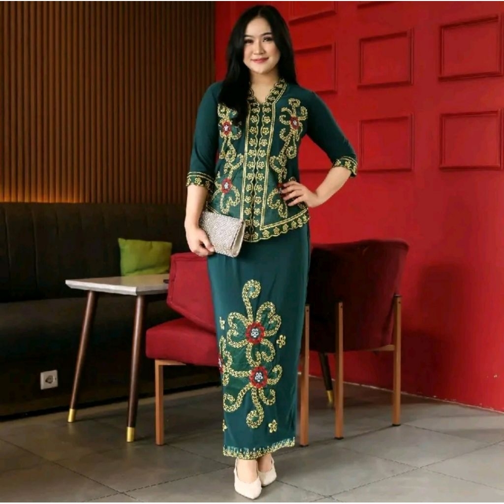 Kebaya Encim Motif Bunga Congklak Set Rok Lengan 7/8 Kebaya wisuda Kebaya Pesta High Premium Qualty 100 PERSEN