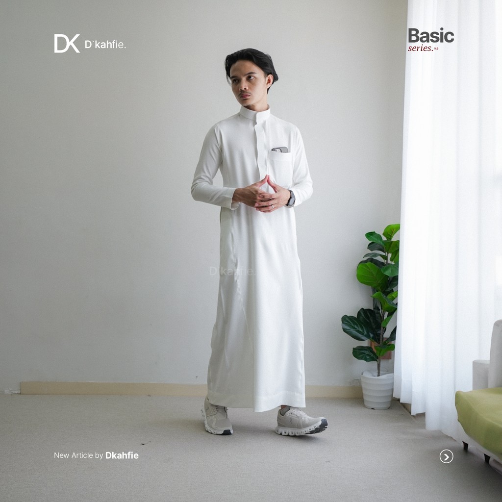 Dkahfie White Basic Thobe White Series 5.5 | Gamis Pria Slimfit | Gamis Pria | Gamis Slimfit