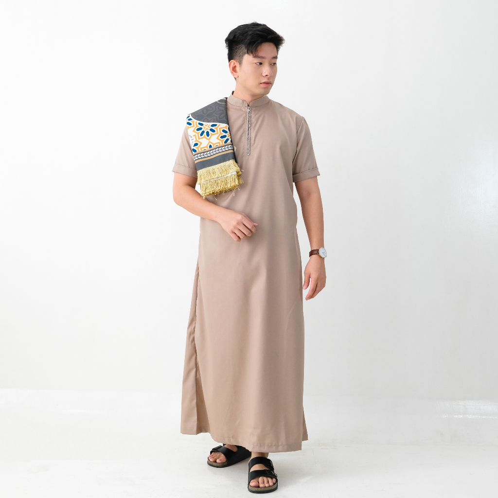 SANVANINA Azzam Short Sleeve Zip Thobe | Gamis Jubah Zipper Muslim Pria Dewasa SlimFit Lengan Pendek