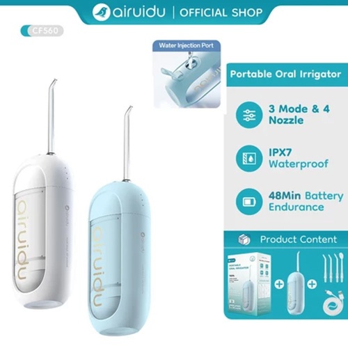 Airuidu 150ML Water Flosser CF560 Pembersih Karang Gigi (3 Mode + 4 Nozel) IPX7 Waterproof Mini Water Floss Electric Ora