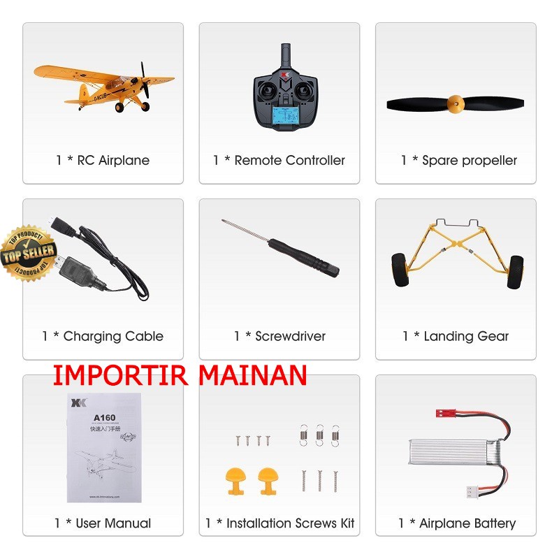 [Star] pesawat rc wltoys XK A160 J3 skylard brushless 5ch 3D/6G rc airplane Kapal Terbang Mainan Pesawat Remote Control