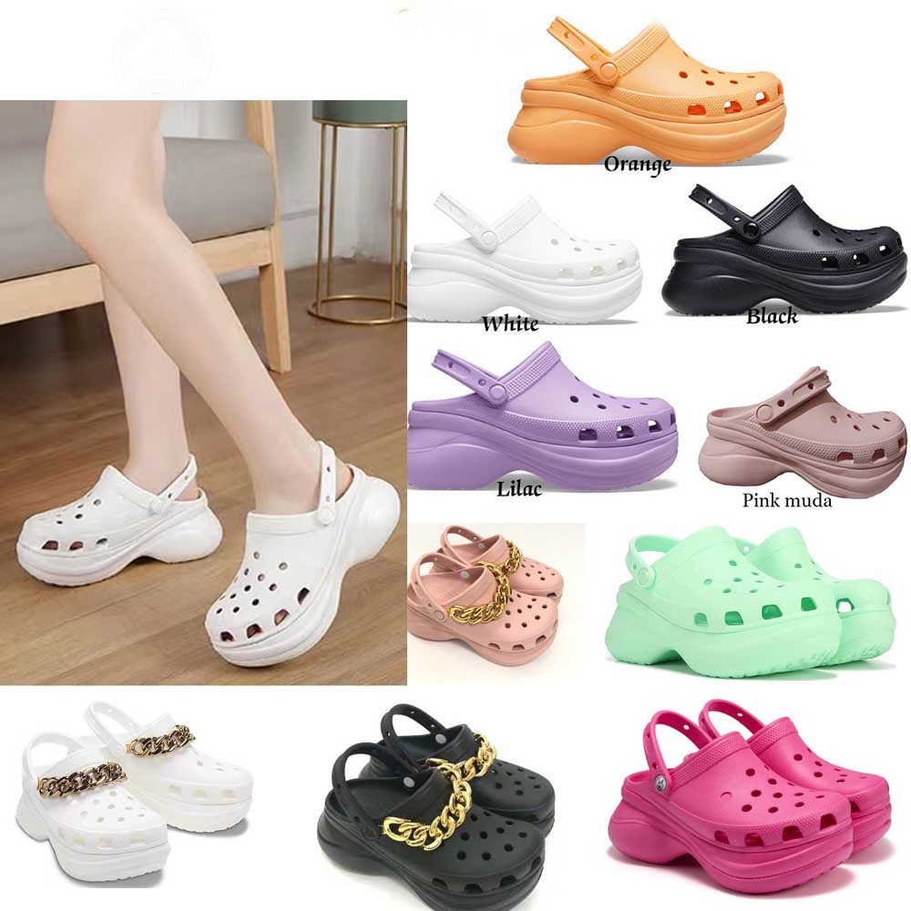 [PROMO] Classic Bae Clog Cross Sandal wanita platform Chain Embellished Tinggi 78cm