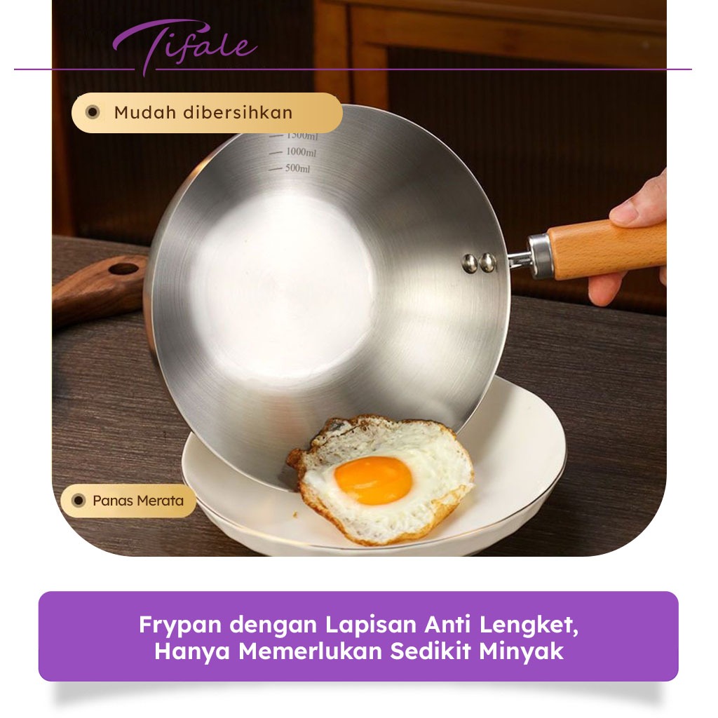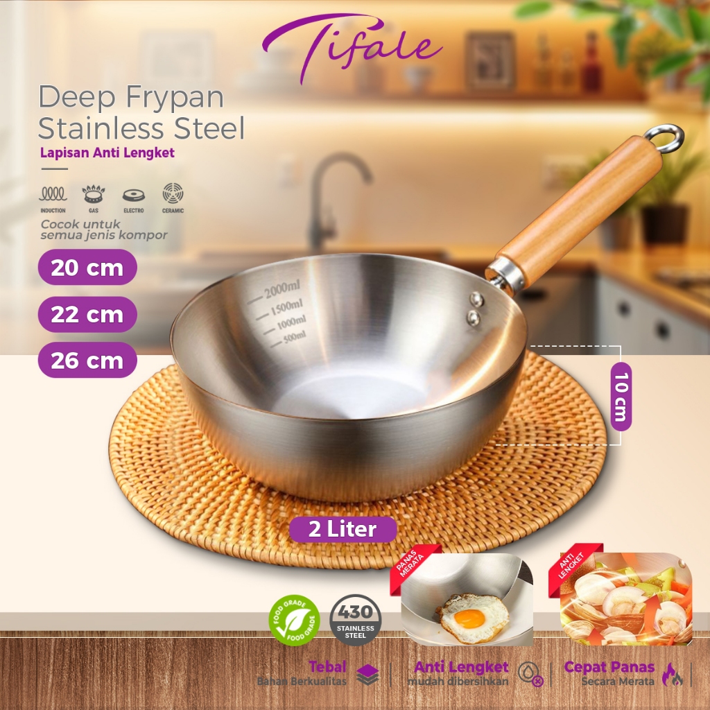 Tifale Saucepan Deep Frypan Stainless Steel Panci Sup Mie Kuah Gagang Kayu Panci Mpasi