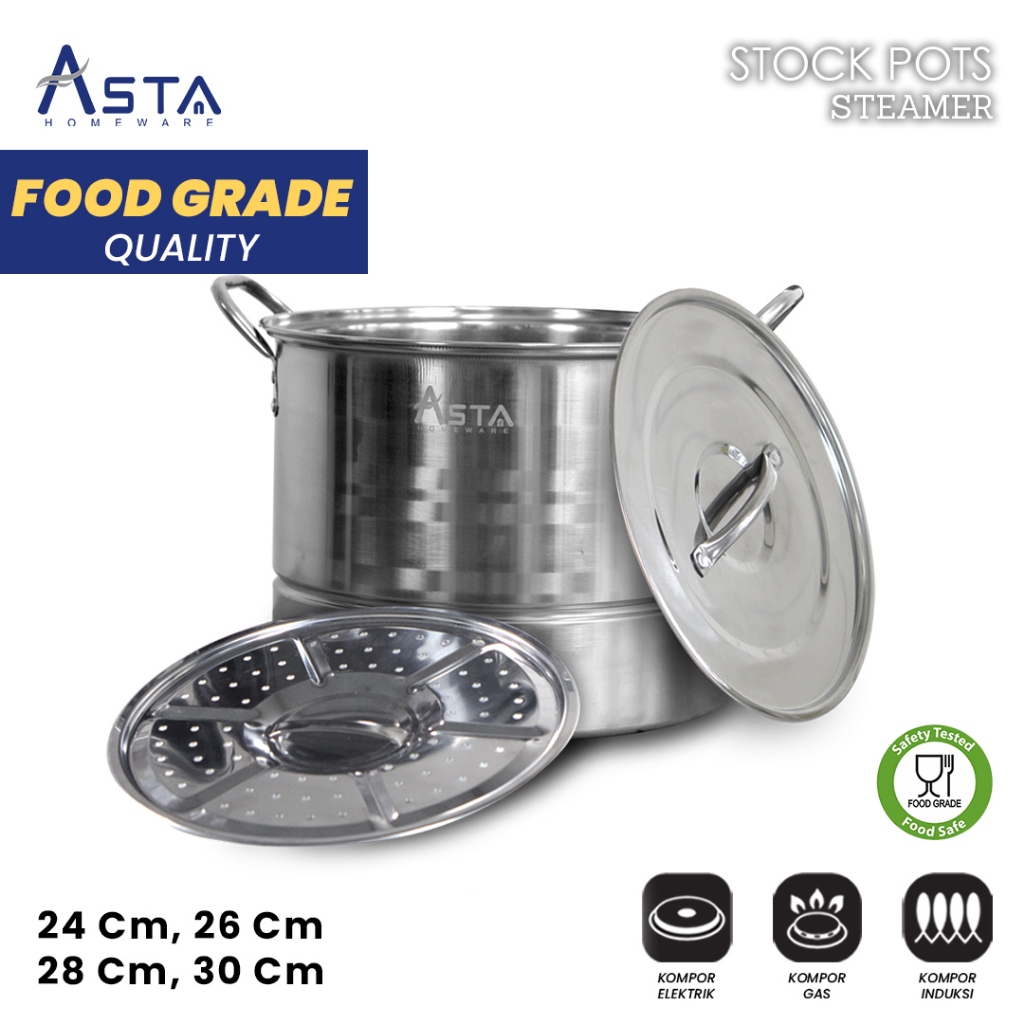 Asta Panci Dandang Kukus Stainless Steel Stock Pot Steamer Dandang Bakso Nasi Tebal