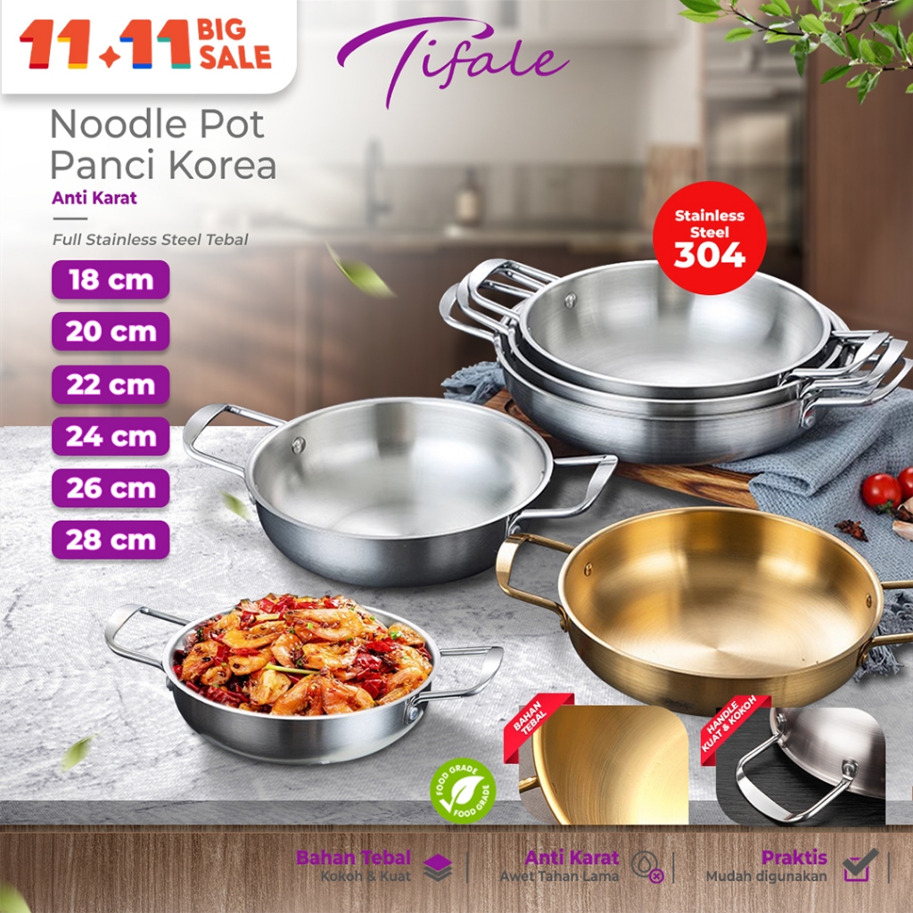 Tifale by Hongzhuo Panci Ramen Ramyun Korea Premium Silver Noodle Soup Pot Stainless